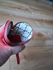Kate Spade at her whimsical best. The best little compartment to tuck into your bag or pocket. Used and in good condition, it has a small spot at the top of the heart where the stitching is coming undone, as pictured.