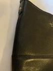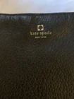 The Kate Spade Small Black Leather Crossbody Purse with a thin strap is a stylish and versatile accessory for women. Made from black leather with gold-plated hardware, this rectangular purse features a zip closure and inner pockets for organization. The adjustable crossbody strap and detachable strap make it convenient for everyday use. With a classic designer theme and solid black exterior, this purse is perfect for any occasion, whether you're out for a night on the town or running errands. Used in good condition 10x10