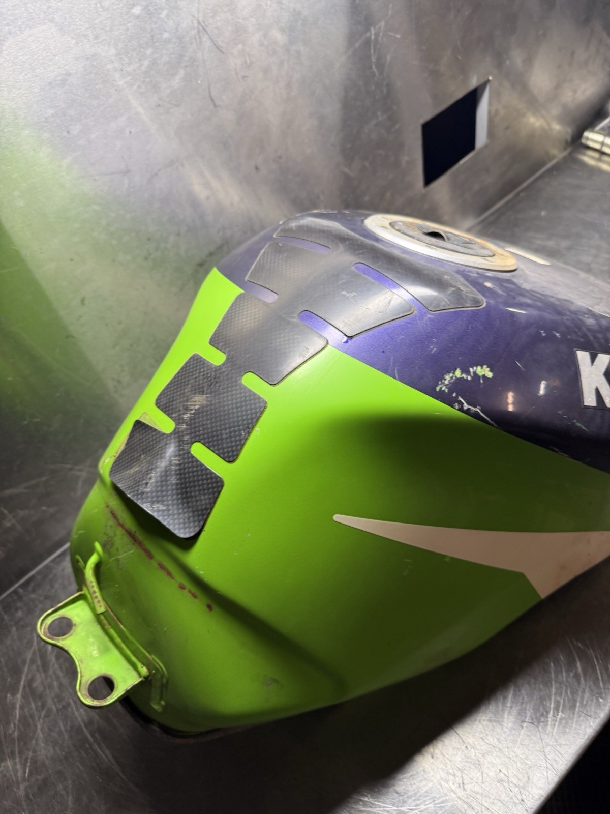 Kawasaki zx6 tank as shown has a dent and a few scratches ect, overall looks ok no key for tank can’t confirm what inside looks like, assume it’ll need a flush ect Fixed price postage in Australia. Overseas postage at cost. Pictures form fitment and condition description. Please note i will combine shipping, ebay combined shipping setup isnt great. Message me after your multiple item purchase so i can refund the difference. I dont ship through the ebay app so this is the easiest way for me to sort it out. PLEASE NOTE EVERYTHING I HAVE IS LISTED ON EBAY. I can only give so much fitment advice on a bike ive never seen, please reference your part book for fitment advice.