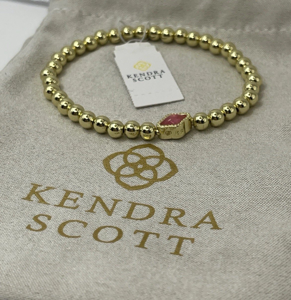 Kendra Scott 14K Gold Plated Abbie Beaded Stretch Bracelet In Azalea Illusion Metal: 14k Yellow Gold Over Brass Material: Azalea Illusion Closure: Stretch Bracelet Size: 6.5" Unstretched Circumference, 0.4"L X 0.35"W Station Comes with Kendra Scott jewelry pouch