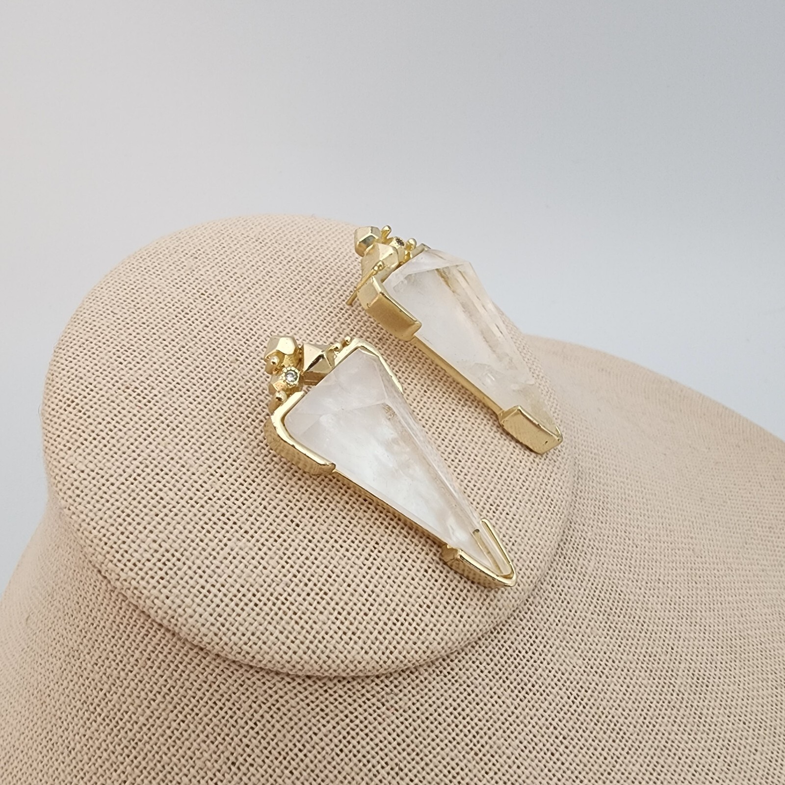 Kendra Scott Crystal Ivory Illusion? Geometric Pyramid Triangle Stud Statement Earrings One Earring Has Been Repaired And Has Residue Left On Post. Post Is Still Loose. See Pics For Details. You Will Be Buying These Earrings As Is.