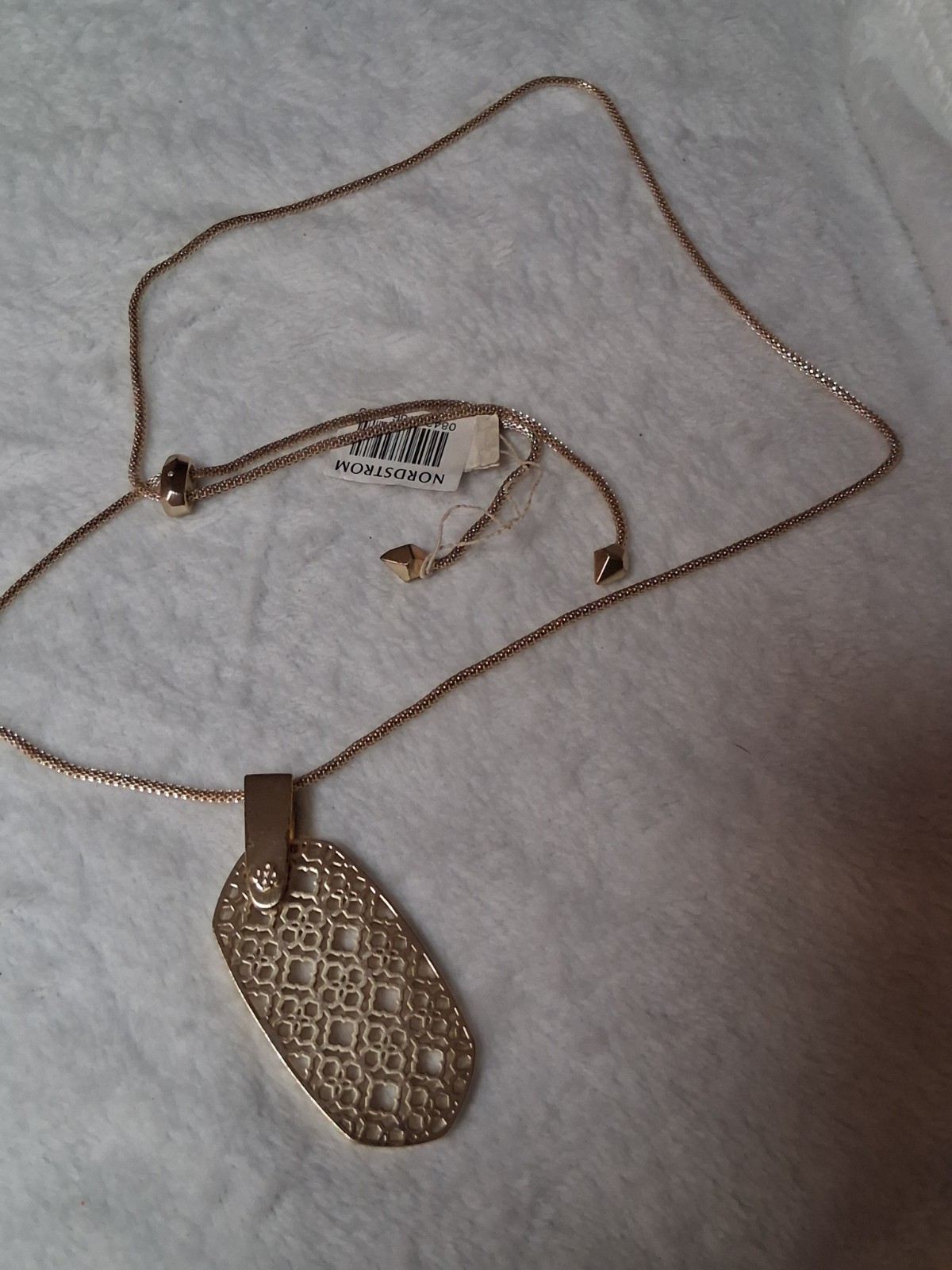 The Kendra Scott Inez Filigree Long Pendant Necklace is a stunning piece of jewelry perfect for anniversaries. Made with 14k gold plated brass, this adjustable pendant features an oval shape and is signed by the brand for authenticity. The necklace exudes beauty and elegance, with a classic gold color that is versatile and timeless. Whether worn alone or layered, this piece is sure to make a statement and would make an excellent gift for a special occasion.