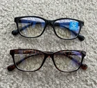 Kenzhou Eyewear Blue Light Glasses. Two glasses in the box—one with black frame and one with a brown tortoise shell frame.