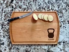 Design: Personalized Kettlebell Cutting Board or Charcuterie Serving Tray All items ship via USPS - please make sure your address is correct :-) Whether used as a charcuterie serving tray for snacks or cutting board, our bamboo, walnut and cherry custom boards are the perfect addition for the home and make the perfect gift for your loved one celebrating a birthday, anniversary, new home, wedding, etc! *** FEATURES *** • SIZES: We have multiple styles and sizes available. To see our current sizes available, click the drop-down menu. The photo slide contains a photo showing each side by side. Please note, the board with the juice groove only has the groove on the front side of the board. • THICKNESS: Bamboo Boards - Approximately 1/2" Thick; Walnut & Cherry Boards - Approximately 3/4” Thick • UNIQUE: Every board is unique with the grain and coloring varying throughout - no board is the same! • CARE INSTRUCTIONS: Hand wash only with warm water. Do not soak. Please apply mineral oil throughout the board’s life. • PERSONALIZATION/CUSTIMIZATION: Do you want the text placed differently on the board? Please don’t hesitate to contact us. All personalization notes can be entered in the personalization box when checking out. • SHIPPING: All cutting boards ship within 2 to 5 business days. • WHOLESALE ORDERS: Please don’t hesitate to contact us for information about wholesale orders. Processing times for larger orders may change. • NOTE: Colors can vary a bit on different monitors and screens. Any props included in photos are not included. Please be sure to double-check your address to make sure it is accurate for USPS delivery. If a package is returned to us due to an invalid address, the buyer is responsible for all additional shipping charges. We appreciate you supporting small business – best wishes! For items ordered with simple edits, we do not send proofs since the layout doesn't change from the example(s). However, in the event there are requests that change the layout from the example(s), we do send proofs for approval before making the product. If you'd like a proof before we make the product, please note so in the personalization box.