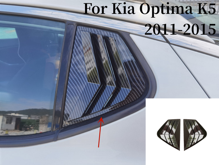 These carbon fiber rear side window louvers for the Kia Optima K5 look amazing and fit perfectly! The ABS plastic is high quality, and the self-adhesive tape makes installation a breeze—no drilling or modifications needed. They arrived brand new, well-packaged, and instantly gave my car a sleek, sporty upgrade. Highly recommend for anyone wanting to enhance their Optima’s style!