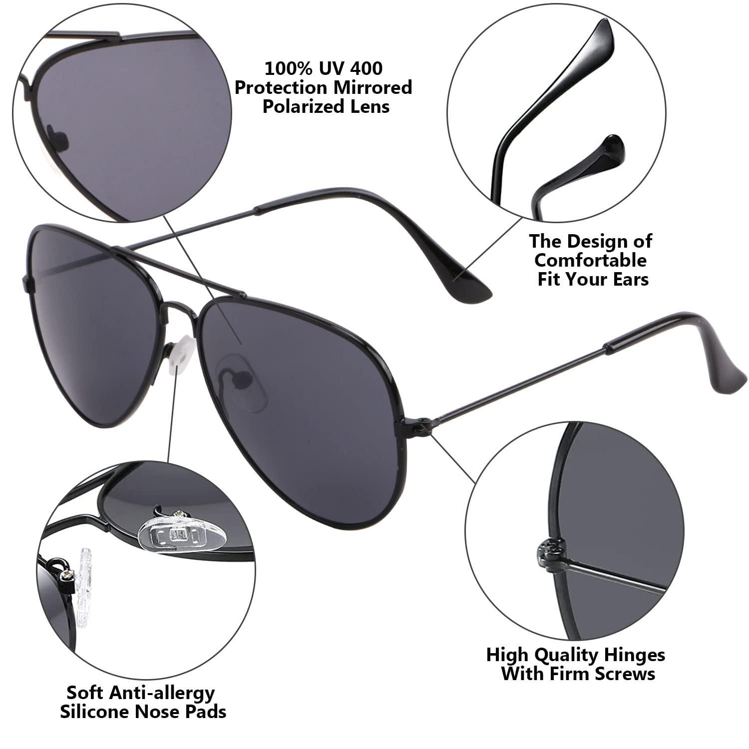 Sunglasses Materials: kids polarized sunglasses made of stainless steel metal frame, stainless steel metal hinges, polarized lenses and soft non-slip nose rest. All these details ensure long lasting wear and comfort. Polarized UV400 Lenses: Our childrens aviator sunglasses use mirror coating lens inner layer has a UV resistance coating, polarized sun glasses can provide 99% polarization efficiency, UVA and UVB light ultra violet blocking lenses with added polarization can eliminate glare while maintaining color integrity. Polarized Aviator Sunglasses Size: Lens Width: 50mm, Frame Height: 42mm, Nose Bridge: 14mm, Frame Width: 122mm, Temple Length: 122mm, Net Weight: 13g.Comes with a storage bag that can also be used as glasses cloth. Outdoor Sunglass for Kids: classic kids polarized aviator sunglasses suitable for many occasions is a good choice for outdoor activities and sports like traveling, cycling, running, fishing, beach, climbing, playing on the seaside, skiing and etc. It is also a cute accessory for party or cosplay. Children Aviators Sunglasses: Classic designed for chirdren at the age of 2-9. Small frame designed for boys and girls alike, Help children look great and be protected on the sunniest of days.