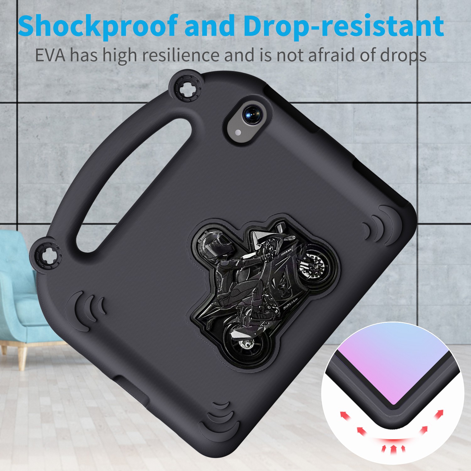 Features: 1. Perfect,high quality Tablet case. 2. Made of high quality EVA material. 3. Fashion design, easy to put on and easy to take off. 4. Case Kids with built in Motorcycle Stand,Distinctive yet full of childlike charm. 5. The one-handed grip and design make it easy to carry and travel, especially for your little one. 6. Perfectly fits the shape. 7. Protect your equipmentfrom dust, scratching and shock. 8. Protect your valuable investment from scratch and damage. Packaging: 1 x For Mini 8.3" Cas e Cover Christmas Gift (Case cover only; does not include tablet, tablet screen protector, or pencil) Please check back bottom of your iPad to find one of these model numbers Choose Model Name iPad Model Number Screen Size(inch ) For iPad Mini (6th 8.3"2021) A2567/A2568/A2569 8.3 For iPad Mini (A17 Pro) 2024 A2995/A2996 8.3 For iPad 5th Gen (9.7"2017) A1822/A1823 9.7 For iPad 6th Gen (9.7"2018) A1893/A1954 9.7 For iPad Air 1(9.7"2013) A1474/A1475/A1476 9.7 For iPad Air 2(9.7"2014) A1566/A1567 9.7 For iPad Pro 9.7" (2016) A1673/A1674/A1675 9.7 For iPad 7th Gen (10.2" 2019) A2197/A2198/A2199/A2200 10.2 For iPad 8th Gen (10.2" 2020) A2430/A2429/A2428/A2270 10.2 For iPad 9th Gen (10.2" 2021) A2602/A2603/A2604/A2605 10.2 For iPad Air 3(10.5"2019) A2154/A2152/A2153/A2123 10.5 For iPad Pro 10.5 (2017) A1701/A1709/A1852 10.5 For iPad 10th Gen (10.9" 2022) A2696/A2757/A2777 10.9 For iPad 11" (A16) 2025 A3354 / A3355 / A3356 11 For iPad Air 4(10.9"2020) A2316/A2324/A2325/A2072 10.9 For iPad Air 5(10.9"2022) A2588/A2589/A2591 10.9 For iPad Air 11 M2 (2024) A2902/A2903/A2904 11 For iPad Air 11 M3 (2025) A3266/A3267/A3270 11 For iPad Pro11 2018 A1979/A1980/A1934/A2013 11 For iPad Pro11 2020 A2228/A2068/A2230/A2231 11 For iPad Pro11 2021 A2301/A2377/A2459/A2460 11 For iPad Pro11 2022 A2759/A2435/A2761/A2762 11 For iPad Pro 11 M4 (2024) A2836/A2837/A3006 11