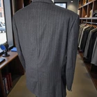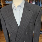 Size: measures as a 46L with 27-inch arm length and a jacket length of 33 inches. For complete measurements, see photo #2 To see exactly how we measured, see the last series of photos. 1 inch of extra fabric to extend the arm length Color: charcoal with brown pinstripes Condition: Excellent. No flaws were found. No holes. No snags. No smells. No stains Full canvas, ticket pocket, dual vent, medium shoulder pads, vintage custom tailored, virgin wool fleece Return policy: We offer free shipping and no returns. We can not afford to offer both in the highest return category on eBay. It becomes very expensive to mail out items for free for people to try on if they are not confident in checking the measurements in picture #2. If you prefer to have the ability to return the item and pay $12.95 shipping, please send us a message, and we can change the listing format to offer returns. The $12.95 shipping cost would break us out even in the case you needed to return the item. We ship the next business day after the payment is made.