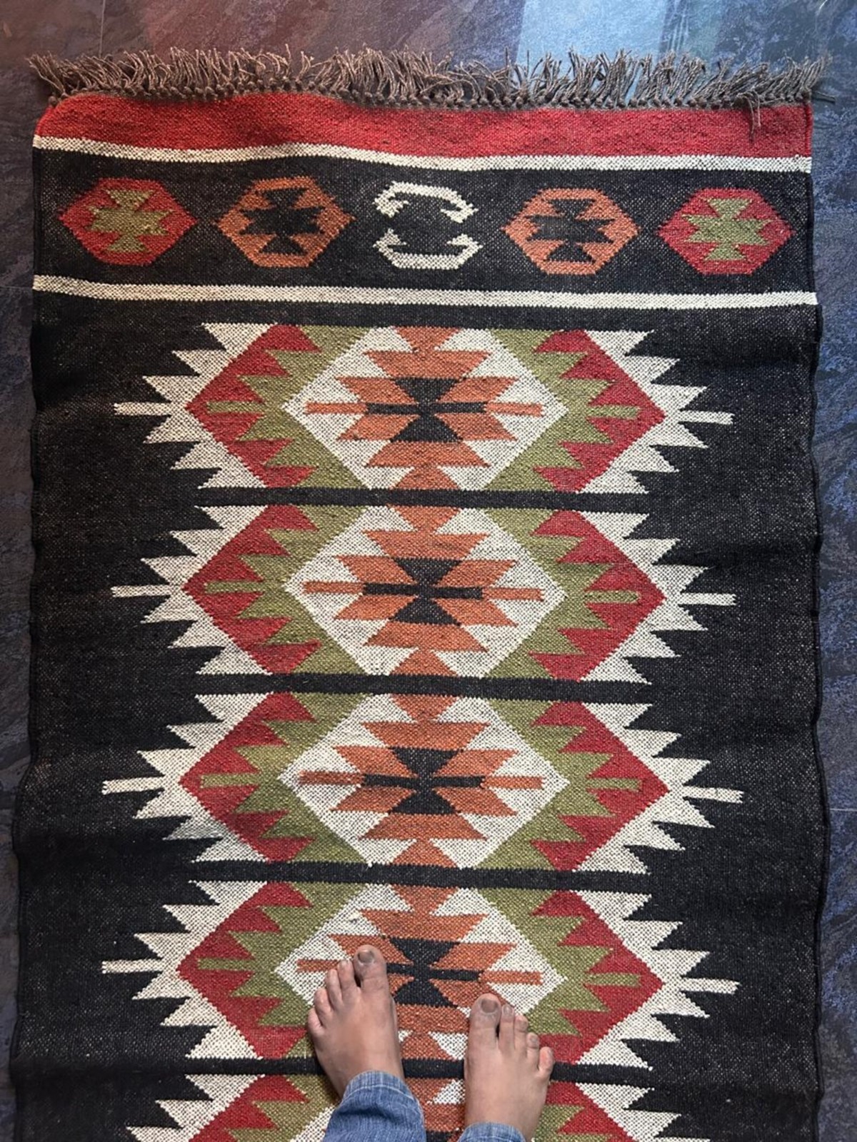 Welcome To The Modern Kilim Rugs🙏🎉 The wool Jute rug is made in finest quality of wool and jute material in a ratio of 3:1. These have fastness of color. You can wash it by hand. This is suitable for the high traffic area. Due to two-color, wool and jute material, It's hide the stain and dust. This is very ideal for those who have pets or Baby. Here find the best contemporary design wool jute dhurrie. This is perfect for the any type of home decor due to the vintage look. Hand-woven of a perfect wool and jute blend, the Kilim wool jute Rug features a dynamic pattern in a bold color scheme, making it a distinctive accent to any home. You can use as Doormat and Yoga mat also. Hand-woven of a perfect wool and jute blend, the Kilim wool jute Rug features a dynamic pattern in a bold color scheme, making it a distinctive accent to any home. A fresh, organic addition to any indoor space, this Wool Jute rug is perfect layered over hardwood floors, rolled out under coffee tables, and beyond., The jute weave of this rug is low maintenance and adds a braided texture to your living space. The jute fiber is also durable and great for any high traffic areas. This wool jute rug is incredibly durable since it is made primarily of jute. It's hand-woven from 100% wool & jute fibers. Caring Instructions Natural Fibers are highly absorbent and should be cleaned regularly. Vacuum regularly to prevent dirt from becoming trapped in the fibers. Regularly vacuuming, rotation and occasional gentle shake will keep the rugs looking their best CUSTOM RUG - If You Want This Same Design In Other Size We Can Make For You. And If You Have Own Pattern In Your Mind You Can Give Us We Will Happy To Customize You Idea. We will do our best to match the colors, but there will some small changes due to the nature of handmade items. we will also send you a picture once the rug is finished and will ship only after your confirmation and satisfaction ? If you can't find your desired dimensions just drop us a message. We can provide any size Eco Friendly Material (1) Jute : Jute Is A Strong, Natural Fiber, The Second Most Important Vegetable Fiber After Cotton Not Only For Cultivation, But Also For Versatility; The Outer Is Used For Firewood, And The Leaves Are Used For Food. The Fibers Are Used To Make Kilims, Fabrics, And Bags. We Source The Highest Grade Jute From Bangladesh To Ensure Quality Of The Products Is Exceptional. (2) Wool : Wool Is The Textile Fiber Obtained From Sheep Shipping & Delivery Information Handling Time : Processing times may vary depending on the item. For more details, please visit the "Shipping" tab. Delivery Time : Estimated delivery time is 4-7 business days after dispatch. Customs & Taxes : Buyers are responsible for any applicable customs duties or import taxes. Please note that delays due to customs are beyond our control. Address Accuracy : To ensure smooth delivery, please provide your complete and correct address along with contact details at the time of purchase. Return & Exchange Policy We want you to be completely satisfied with your purchase. All items come with a 30-day return policy, giving you plenty of time to decide if the rug is perfect for your space. For detailed information about returns and exchanges, please check the "Returns" tab. BUYERNOTE:- The original color of items which you buy may differ minutely from the images due to camera capture sensitivity, lighting & even your system screens, so there may be a minor possibility in change of brightness & contrast Rugs will be shipped folded, so some creases can be seen at the time of unpacking the rug. These creases will go away after some days. ~~ Thanks for visit our shop. Have A Nice Day. ~~