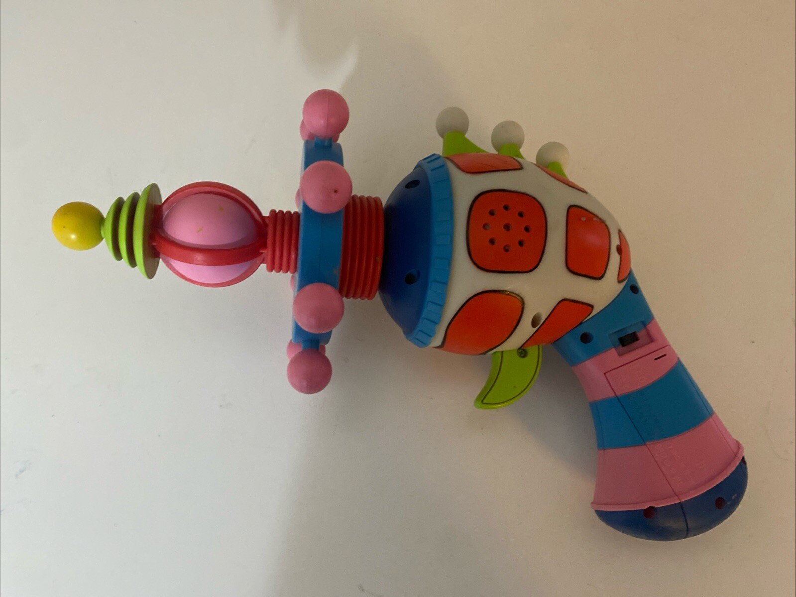 This is a Killer Klowns From Outer Space Cotton Candy Gun theatrical quality prop from the movie "Killer Klowns from Outer Space." Manufactured in 2021, this 9.5-inch long, 6-inch tall, and 5-inch wide hard plastic gun is inspired by the horror and sci-fi genre. It is a life-size 1:1 scale replica featuring multicolor design and is part of the Killer Klowns franchise. Great for Halloween-themed events or cosplay.