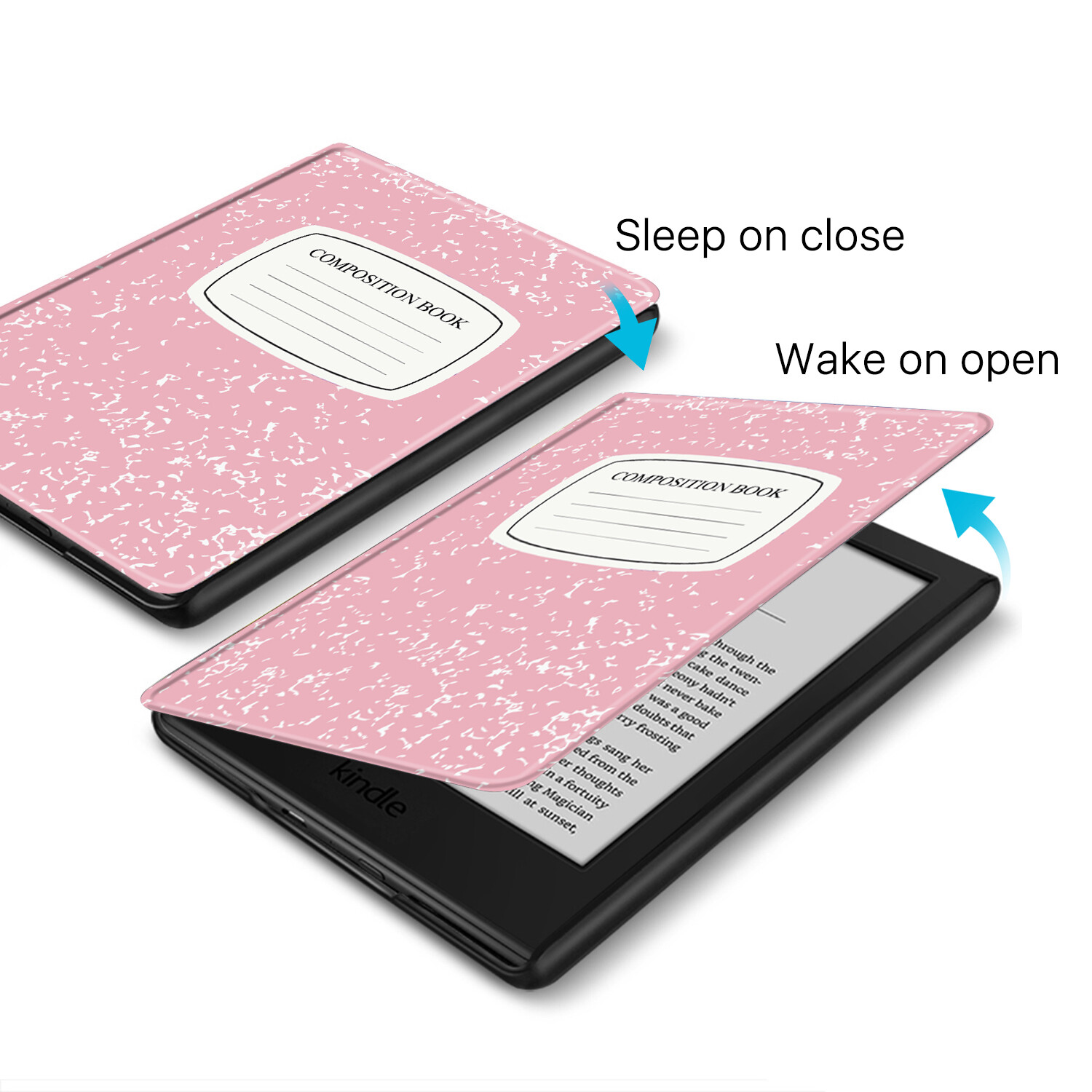Case for All New Kindle 10th Generation Gen 2019 Release - Will Not Fit Kindle Paperwhite or Oasis, Smart Cover with Auto Sleep & Wake for Amazon 6" Display E-Reader (Composition Book Pink) Case for All New Kindle 10th Generation Gen 2019 Release - Will Not Fit Kindle Paperwhite or Oasis, Smart Cover with Auto Sleep & Wake for Amazon 6" Display E-Reader (Composition Book Pink) Introduction: Slim, form-fitting cover to perfectly fit your all new Kindle (10th Generation) and provide full front and back protection. The cover is easy to securely attach and remove, and folds back for easy one-handed reading. It automatically puts your Kindle to sleep when closed and wakes upon opening, making it easy to jump back into your book. Made of durable synthetic leather, this case is designed to be lightweight and protective, protect your device without adding unnecessary bulk, so you can hold it for hours of reading with minimal effort. With the nylon woven interior, the cover protects your Kindle and keeps the screen clean without adding bulk, making it perfect for taking your Kindle wherever you go. Feature: Designed specifically with Auto Wake/Sleep for Amazon All-New Kindle E-reader (6" Display, 10th Generation 2019 Release) Automatically wakes or puts your device to sleep when the lid is opened and closed; Cover folds back for easy one-handed reading Ultra slim lightweight protective hardback with premium quality synthetic leather; Micro fiber suede interior lining to protect your device from scuffs and scratches and adds an additional layer of protection and comfort Corner & drop impact resistant safeguarding your device beyond normal wear and tear; protect your device from bumps, dust, damage, scratches Magnetic clasp closure ensures cover is securely closed, secures your device without straps covering the front; Precise cut out and openings for button controls and charge port. Device can be charged with case closed Specification: Note: Case is ONLY compatible with Amazon all-new Kindle (10th generation, 2019 Release) Will Not Fit previous generation Kindle devices and other Kindle models Package Content: 1x Case for Kindle 10th Generation - Slim & Light Smart Cover Case with Auto Sleep & Wake for Amazon Kindle E-reader 6" Display, 10th Generation 2019 Release (Composition Book Pink)