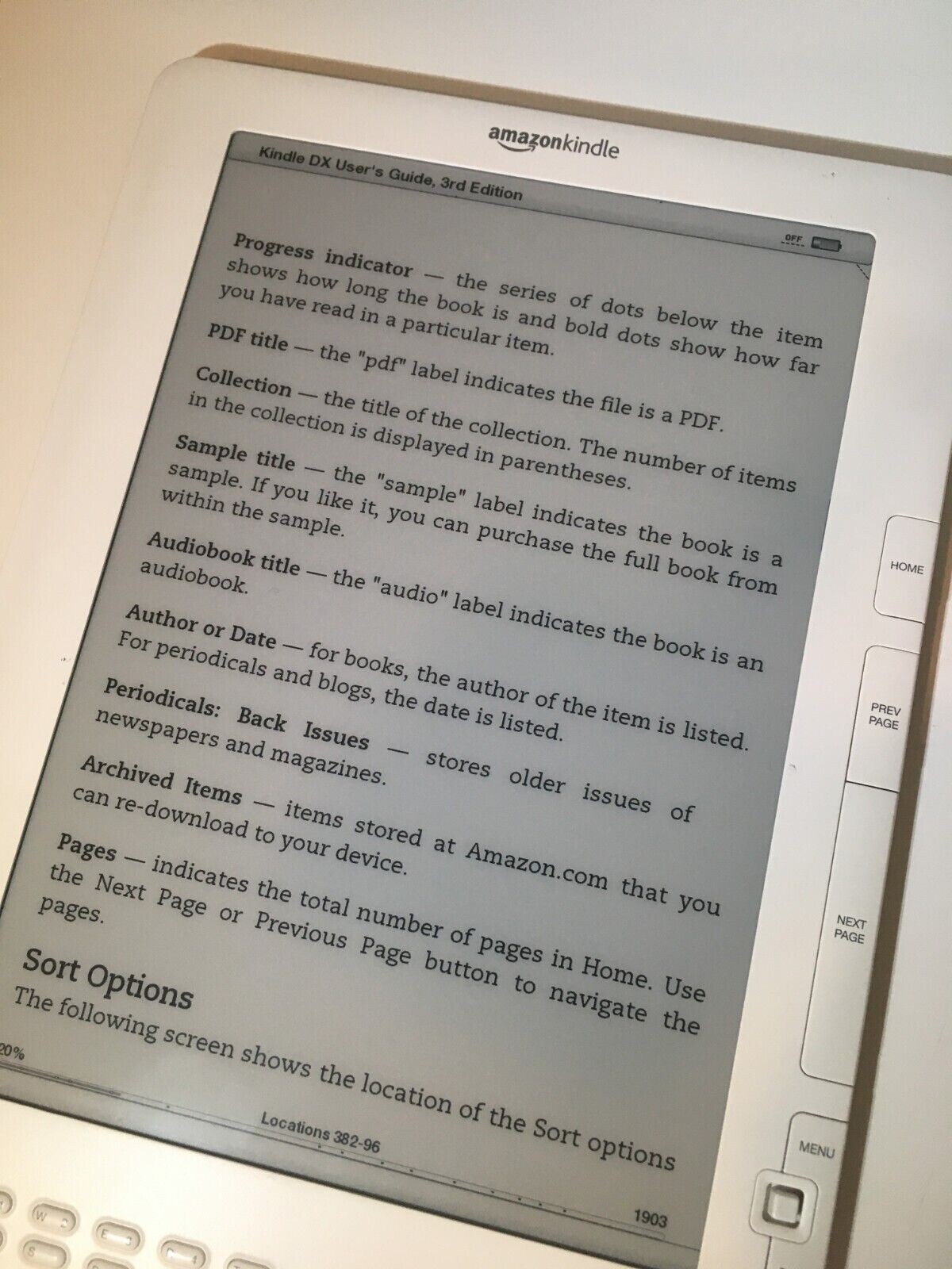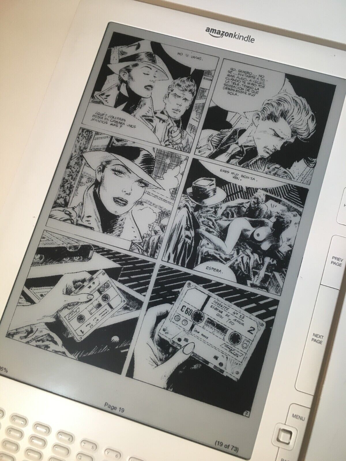 Kindle Deluxe 9,7 pollici. Il e-book ideale per leggere manga. Prodotto Ricondizionato: Batteria e schermo nuovi. Si basa su una particolare tecnologia denominata “ inchiostro elettronico ”, pensata proprio per imitare l’aspetto dell’inchiostro su un normale foglio di carta. Questo tipo di innovazione permette al lettore di leggere per molte ore, senza affaticare la vista. Cosa che invece si verifica piuttosto spesso quando si utilizzano normali dispositivi come pc e tablet. dimensioni: circa 26,4 cm × 18,3 cm × 1 cm autonomia: da 2 giorni di lettura (con wifi attivo) a 1 settimane (spegnendo il collegamento wifi) rotazione della visualizzazione: automatica, ruotando lo schermo la visualizzazione passa da verticale a orizzontale e viceversa. La tipologia di navigazione e la possibilità di acquistare materiale on-line è simile al modello precedente. Scheda tecnica Schermo 9.7 pollici grigio 16 livelli risoluzione: 1200x824, 150 punti per pollice Tipo di schermo E-Ink Pearl Rotazione schermo SI Comandi tastiera + pad Memoria 4 GB, La memoria disponibile per l'utente 3.3 Gbyte (=3000 volumi digitali circa) Espandibilità mem. non espandibile Formati supportati AZW, MOBI, PDF TXT,DOC,JPEG,PNG,GIF,BMP Text to speech SI Riproduzione audio SI Formati audio MP3,AAX Connettivita' wireless NO Altre connessioni 3G USB SI - microUSB Durata batteria 14 giorni - in pagine:7500 Peso 535 gr Dimensioni (AxLxP) 264 x 182 x 9,6 mm Contenuto della confezione cavo USB Note uscita audio jack 3.5mm stereo, altoparlanti stereo. Text-to-speech inglese.