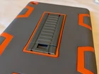 Kindle fire HD 8" Orange and Grey Case. Cases are brand new with a hard first layer and a silicone second layer to help with shock resistance. 2016 model. Packaging may be slightly disheveled upon arrival due to travel.