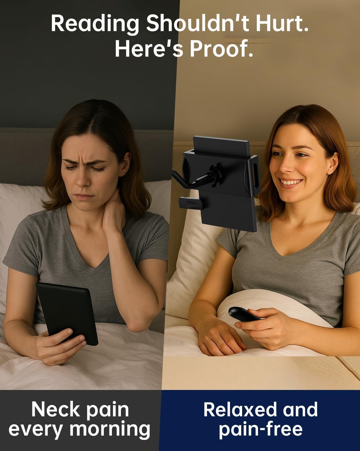 Kindle Holder with Remote Page Turner | Hands Free Bed Reading Stand | iPad Brand TeoTeeo Form Factor Universal bracket Compatible Devices The page turner supports capacitive screen devices only, E-reader,Surface,Kindle,iPhone,Kobo,Android,iPad,Tablets,Smartphone,kindle paperwhite,kindle oasis The tablet holder can accommodate smartphones and tablets ranging from 4.5 to 10 inches See more Compatible Phone Models IPhone 6/6 Plus/6S/6S Plus/7/7 Plus/8/8 Plu/X/XS/XS Max/XR/11/11 Pro/11 Pro Max/SE 2nd/12/12 Pro/12 mini/12 Pro Max/13/13 mini/13 Pro/13 Pro Max/14/ 14 Plus/ 14 Pro/ 14 Pro Max/ 15/ 15 Plus/ 15 Pro/ 15 Pro Max 16/ 16 Plus/ 16 Pro/ 16 Pro Max; Galaxy S9, S9+, S10e, S10, S10+, S10 5G, S10 Lite, S20, S20+, S20 Ultra, S20 FE, S21, S21+, S21 Ultra, S21 FE, S22, S22+, S22 Ultra; Galaxy Note9, Note10, Note10+ , Note10 5G, Note10+ 5G, Note10 Lite, Note 20 , Note 20 5G, Note 20 Ultra , Note 20 Ultra 5G; Galaxy A8, A8+, A8 Star, A6s, A6 , A6+, A8 star, A9 star, A7, A9, A8s, A10e, A10, A10s, A20e, A20, A20s, A30, A30s, A40, M30, A50, A50s, A51, A60, A70, A70s, A71, A80, A90 5G, A01, A01 Core, A02s, A11, A12, A21, A21s, A31, A32 4G 5G, A41, A42 5G, A51, A71, A22 5G, A32, A32 5G, A52, A52 5G, A52s 5G, A72, A03, A33, A53, A73; Pixel, Pixel XL, Pixel 2, Pixel 2 XL, Pixel 3, Pixel 3 XL, Pixel 3a, Pixel 3a XL, Pixel 4, Pixel 4 XL, Pixel 4a, Pixel 4a (5G), Pixel 5, Pixel 5a (5G), Pixel 6, Pixel 6 Pro, Pixel 6a. (Remote page turner are not suitable for controlling the taking of photographs) See more Mounting Type Tabletop Features See Every Word Clearly – A Page Turner That Doesn’t Block the Text: Unlike traditional page turners or clip-on Kindle arms, this remote page turner is the first of its kind that won’t block your Kindle screen or force margin adjustments. Whether using a Kindle Paperwhite holder, a Kindle mount with remote, or a standard stand, nothing compares to the clarity and comfort of this fully unobstructed design Read Hands-Free in Bed – Kindle Holder for Bed with Remote Page Turner: Tired of holding your Kindle in bed? This Kindle stand with remote page turner lets you flip pages without lifting a finger. It’s the ideal bedside Kindle holder for winter reading, bedtime relaxation, or staying warm under a blanket—all while keeping your Kindle, iPad, or smartphone perfectly supported Adjustable Gooseneck Arm – The Kindle Mount for Every Angle:The flexible, stable Kindle arm with remote adjusts to your reading position—whether lying flat or sitting upright. Use it as a Kindle bedside stand, a reading arm for bed, or even on a treadmill.Works with most Kindles and tablets (6″–10.2″ screen size). The adjustable clamp opens from 12 cm to 25 cm (about 4.7″–10″) to hold your device securely—whether you clip it by the side or the top. Your ultimate hands-free Kindle Paperwhite stand or tablet holder Silent Page Flips – Kindle Remote Page Turner with No Distractions: Enjoy reading with a clicker page turner that makes zero noise. Our soft-touch Kindle remote and holder ensures silent operation—perfect for nightstand reading, libraries, and shared spaces. This Kindle holder and page turner lets you enjoy peaceful reading without disturbing others Fits Most Kindles, Tablets, and Phones – A Great Gift for Book Lovers: Compatible with Kindle Paperwhite (all generations), Oasis, Voyage, 10th & 11th gen, and all devices 4.7”–10” wide. Works with Kindle Fire, iPads, Android tablets, and phones using reading apps. The perfect Kindle page turner with stand for gifting—birthdays, holidays, or to surprise the reader in your life. Note: Not compatible with Kindle 1st, 2nd, 3rd, 7th, 8th gen or Kindle Touch 4th gen Our Business 100% Customer Satisfaction We go above and beyond to ensure you receive the best level of service. Returns We want you to be happy with your purchase, however in the rare occasion that you are not, please let us know and we will contact you to arrange either a collection or a refund. Please CONTACT US before leaving any negative feedback and we will promptly sort out any issue with your order. 7840515