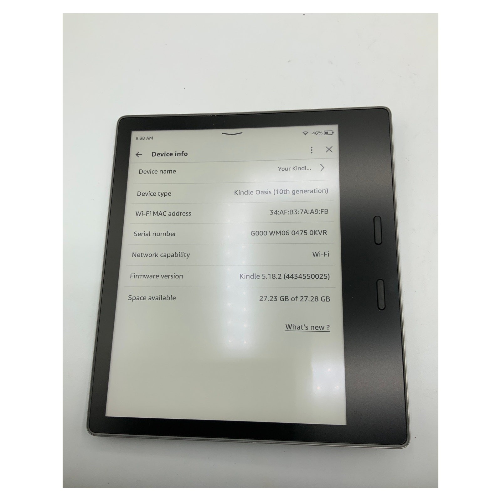 Kindle Oasis 10th Generation, 32GB, Gray Model: S8IN40 Condition: Good Comes with a generic charger. **Please note, this Kindle may come with ads on the lock screen or home screen. Ads can be removed for a fee if desired through Amazon.** I try my hardest to take pictures that reflect the true condition of all used items that I list, but a minor scuff or scratch may be missed. Please inspect the pictures CLOSELY! Item is shipped with only what is pictured. We are not the original owners.