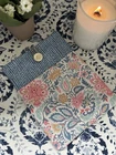 Protect your kindle, book or other device from damage with a padded case. Front pocket for extra storage. Elastic and wooden button to keep your item safely inside the sleeve. Pattern: Pink and Blue Floral, Blue Dots on Blue Choose from: Kindle 7.5 x 5.5, Paperwhite 8 x 6, Scribe 10 x 9 Material: 100% cotton fabric, cotton padding, elastic, and wooden button All items are made by hand and pattern placement may vary. Sizes are approximate and may vary slightly due to the hand cut and sewn nature of the item. Spot clean with mild soap and water. You may use a warm iron to smooth any imperfections after cleaning. Custom orders and sizes available. Contact me with any questions. *kindle not included*