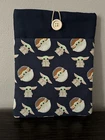 Protect your kindle, book or other device from damage with a padded case. Front pocket for extra storage. Elastic and wooden button to keep your item safely inside the sleeve. Pattern: Star Wars Baby Yoda, Navy and Green Choose from: Kindle 7.5 x 5.5, Paperwhite 8 x 6, Scribe 10 x 9 Material: 100% cotton fabric, cotton padding, elastic, and wooden button All items are made by hand and pattern placement may vary. Sizes are approximate and may vary slightly due to the hand cut and sewn nature of the item. Spot clean with mild soap and water. You may use a warm iron to smooth any imperfections after cleaning. Custom orders and sizes available. Contact me with any questions. *kindle not included*