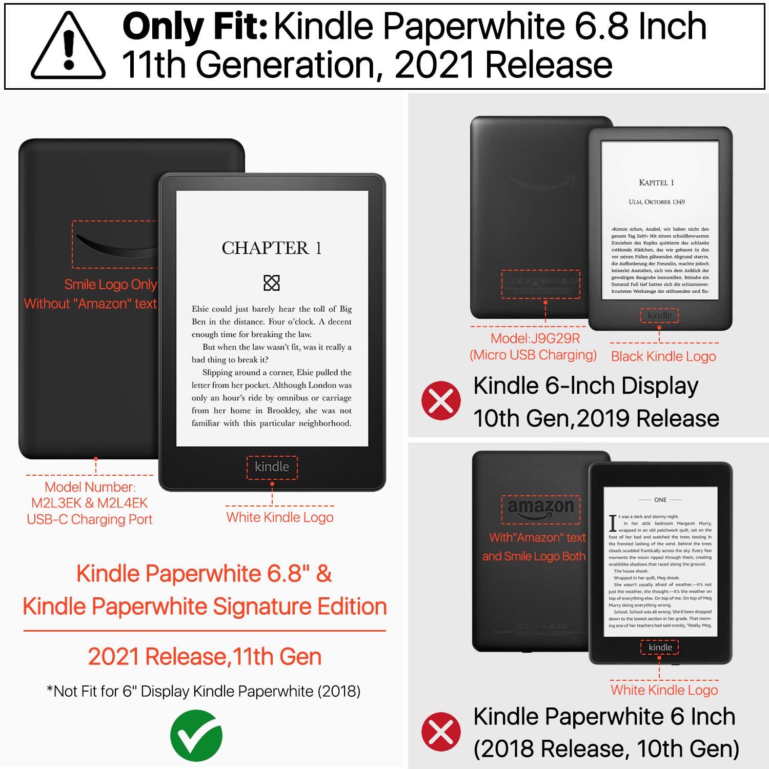 Case for 6.8" Kindle Paperwhite 11th Generation 2021 / Kindle Paperwhite Signature Edition, PU Leather Cover, Protective Sleeve Folio Case for Kindle E-Reader with Auto Sleep/Wake, Emerald Illusions Case for 6.8" Kindle Paperwhite 11th Generation 2021 / Kindle Paperwhite Signature Edition, PU Leather Cover, Protective Sleeve Folio Case for Kindle E-Reader with Auto Sleep/Wake, Emerald Illusions Introduction: Slim, form-fitting cover to perfectly fit your Kindle Paperwhite (11th Generation) and Kindle Paperwhite Signature Edition to provide full front and back protection. The cover is easy to securely attach and remove and folds back for easy one-handed reading. It automatically puts your Kindle to sleep when closed and wakes upon opening, making it easy to jump back into your book. Made of durable synthetic leather, this case is designed to be lightweight and protective, protect your device without adding unnecessary bulk, so you can hold it for hours of reading with minimal effort. With the nylon woven interior, the cover protects your Kindle and keeps the screen clean without adding bulk, making it perfect for taking your Kindle wherever you go. Feature: Designed specifically cover for Kindle Paperwhite 6.8 display 2023, compatible with Amazon 6.8" Kindle Paperwhite, Model: M2L3EK / Kindle Paperwhite Signature Edition, Model: M2L4EK (11th Generation, 2021 Release), not compatible with other models Compatible with Kindle Paperwhite covers 6.8 inch and Automatically wakes or puts your device to sleep when the lid is opened and closed; Cover folds back for easy one-handed reading Ultra-slim lightweight protective hardback with premium quality synthetic leather; Microfiber suede interior lining to protect your device from scuffs and scratches and adds an additional layer of protection and comfort Corner drop impact resistant safeguarding your device beyond normal wear and tear; protect your device from bumps, dust, damage, scratches Magnetic clasp closure ensures cover is securely closed, secures your device without straps covering the front; Precise cut out and openings for button controls and charge port. The device can be charged with case closed Specification: Material: PC Case / PU Leather / Microfiber Lining Note: Case is ONLY compatible with 6.8" Amazon Kindle Paperwhite (11th Generation, 2021 Release) and 6.8" Kindle Paperwhite Signature Edition (11th Generation, 2021 Release), will not fit the regular (non-Paperwhite) Kindle E-reader and other Kindle models Package Content: 1x Case for 6.8" Kindle Paperwhite 11th Generation 2021 / Kindle Paperwhite Signature Edition, PU Leather Cover, Protective Sleeve Folio Case for Kindle E-Reader with Smart Auto Sleep/Wake, Emerald Illusions