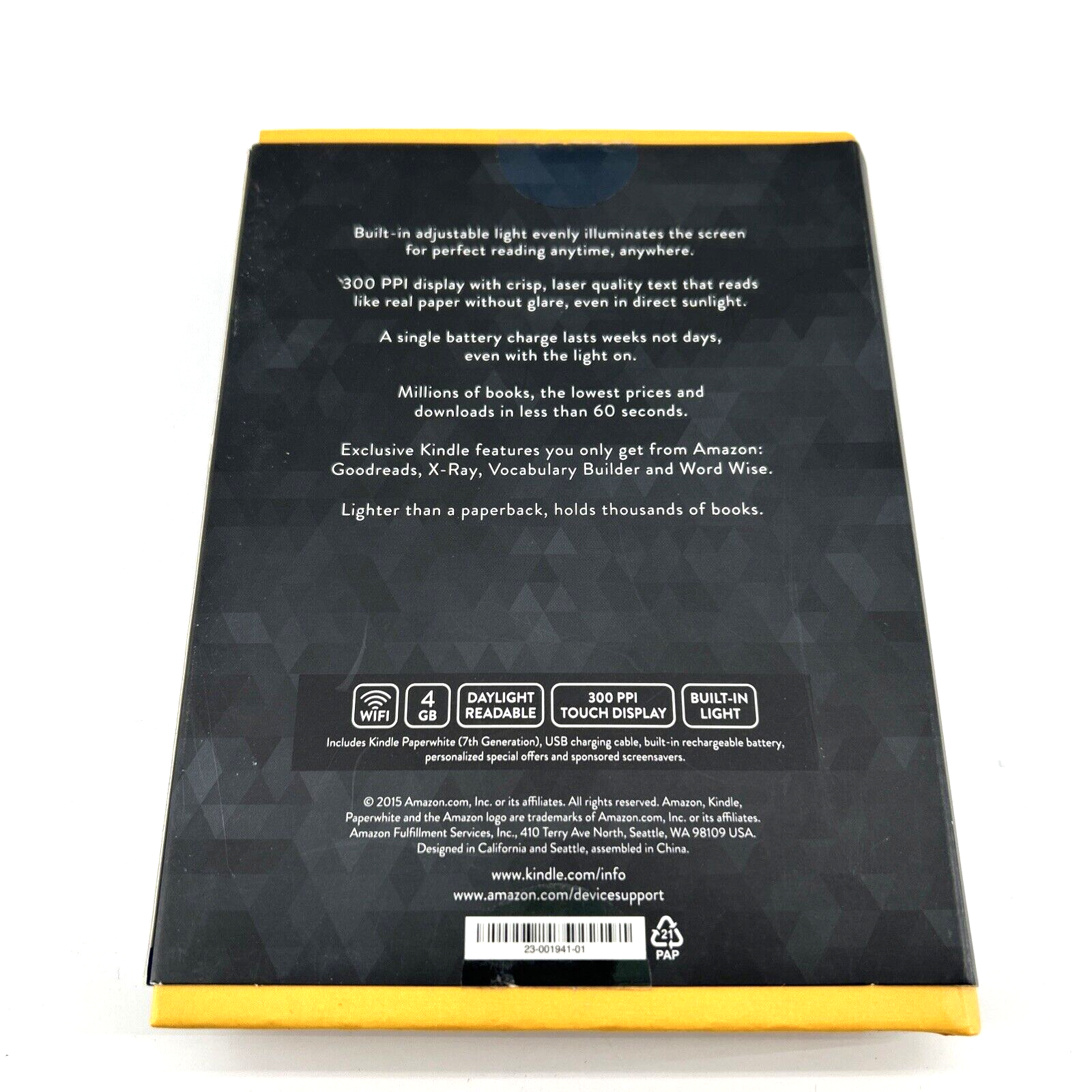 Never removed from sleeve. Comes with USB connector but needs a USB Power adapter to plug into outlet for charging.