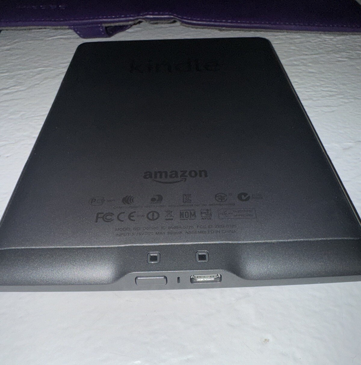 Kindle Reader Amazon Wi-Fi Model D01100 Works Not original charger Please examine ALL photos carefully as they are part of the condition/description. If you have any questions regarding the item being sold, please do not hesitate to send a message before purchasing. What you see in the pictures is ALL that is included in the listing unless otherwise noted. Pictures are of the actual item(s) you will receive. Please note, there may be a prop to aid in the positioning of the item being sold, that prop is NOT part of the listing or part of the item being sold. Sold as is.