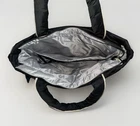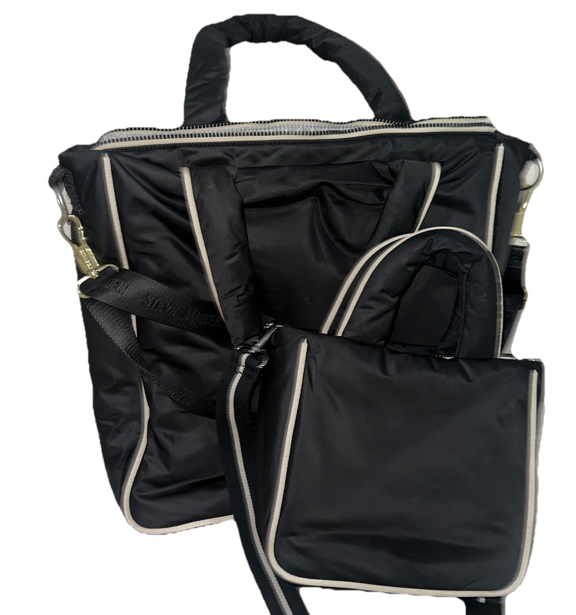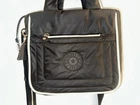 The Kipling Jamil Puffed 13" Laptop Tote Bag in Black is a stylish and practical handbag designed for women. This large tote features a zip closure and a matching small puffer bag, making it a versatile accessory for everyday use. The black exterior and lining, along with the nylon material, give it a sleek and modern look. The strap accent adds a touch of flair to the overall design, making it a chic choice for any outfit. Has crossbody strap. Second bag is Kipling small bag with crossbody strap.