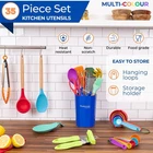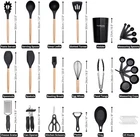 Upgrade your kitchen with the Nuovva 35-Piece Silicone Cooking Utensil Set — the perfect all-in-one solution for modern cooking. Designed for style, durability, and everyday performance, this complete set keeps your kitchen organised while protecting your non-stick cookware. ✅ Complete 35-Piece Kitchen Set Everything you need in one coordinated collection: Spatula Slotted Turner Spoonula Serving Spoon Soup Ladle Pasta Server Basting Brush Egg Whisk Food Tongs Cheese Grater Peeler Can Opener Kitchen Scissors Utensil Holder Spoon Rest 5 × Measuring Cups 5 × Measuring Spoons 10 × Hanging Hooks No more mismatched tools — enjoy a fully equipped, organised kitchen. 🌡️ Heat Resistant & Non-Stick Safe Premium food-grade silicone Safe for non-stick cookware Heat resistant Scratch-resistant heads Easy to clean Cook with confidence without damaging your pots and pans. 🌿 Premium Wooden Handles Durable, eco-friendly wood Comfortable ergonomic grip Reduces hand fatigue Stylish natural finish Combines practicality with elegant design. 🎨 5 Colour Options Available Choose the perfect match for your kitchen décor: Cream Black Colourful Assortment Modern, classic, or vibrant — there’s a style for every home. 🧺 Easy Organisation Included Matching utensil holder keeps tools within reach 10 hanging hooks maximise vertical space Keeps countertops neat and clutter-free Perfect for busy kitchens that value both function and style. 💎 Designed for Everyday Performance Strong, durable, and resistant to wear and tear, this 35-piece Nuovva utensil set is built for daily cooking — from quick breakfasts to full family dinners.