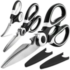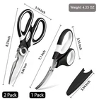 Kitchen Scissors 3 Pack-Heavy Duty Stainless Steel Cooking Shears for Cutting Color Black & White Material Stainless Steel Blade Material Stainless Steel Product Dimensions 8.3"L x 3.74"W About this item Versatile: Kitchen sissors are a versatile tool that can be used for a wide range of tasks in the kitchen. They can be used to cut through food items such as meat, poultry, vegetables, and herbs, as well as to open packaging, trim dough, and cut through twine or string.Seafood scissors make it easier to handle prawns, crabs. Convenient: Kitchen scissors are a convenient tool to have on hand in the kitchen. Unlike a knife, they can be used to snip food items without requiring a cutting board or other surface, and they are also easier to handle than a larger kitchen knife. Durable 2.5mm thickened heavy duty blades: Our kitchen scissors are made with 2.5mm thick stainless steel blades, which are more durable than regular scissors with 1.5mm thick blades, as 1.5mm blades are more easily damaged when cutting bones. Stainless steel blades prevent rust and corrosio, This ensures that they can withstand frequent use in the kitchen and will last for years to come. Easy to Clean: Kitchen scissors are easy to clean and maintain. They can be washed by hand with soap and water, or placed in the dishwasher for a thorough cleaning. Our models even come with a protective cover to keep the blades safe and clean when not in use. Special Features: kitchen scissors come with additional features, such as built-in nutcrackers, bottle openers, or fish scalers. These special features can make the kitchen scissors even more versatile and useful in a variety of different situations. Tip: After cleaning the kitchen scissors, please dry the water stains to keep the scissors in a dry state, so that the scissors can get a longer service life. Package contains: 2 kitchen scissors, 1 seafood scissors Shipping We offer FREE shipping on all orders! We ship within Three business days of payment, usually sooner. We use a selection of shipping services such as UPS, FedEx, USPS etc. We only ship to the lower 48 states, no APO/FPO addresses or PO Boxes allowed. Local pickups and combined shipping options are not provided at this time. Return You can return a product for up to 30 days from the date you purchased it. Any product you return must be in the same condition you received it and in the original packaging. Please keep the receipt. Payment We accept payment by any of the following methods: PayPal Please pay as soon as possible after winning an auction, as that will allow us to post your item to you sooner! Feedback Customer satisfaction is very important to us. If you have any problem with your order, please contact us and we will do our best to make you satisfied. Contact Us If you have any queries, please contact us via ebay. We usually respond within 24 hours on weekdays. Please visit our eBay store to check out other items for sale! Thank you for shopping at our store.