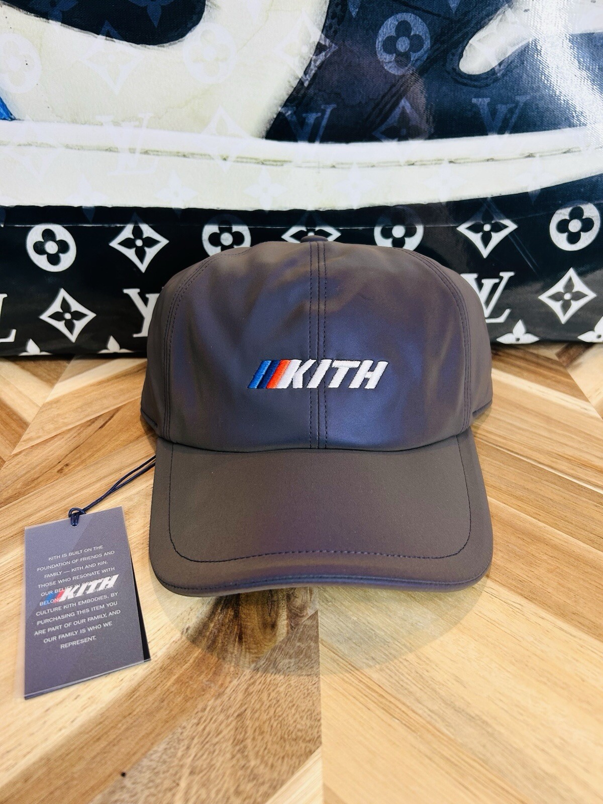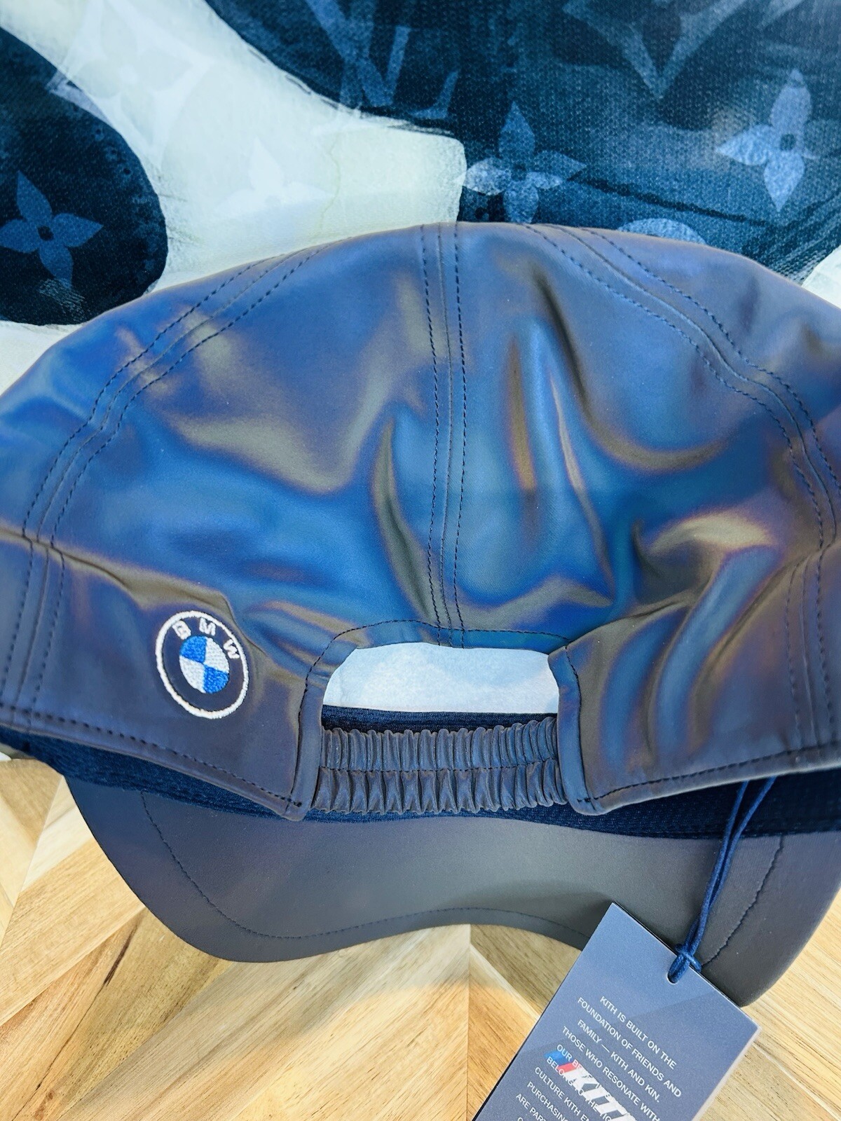 Introducing the Kith X BMW M3 M5 Hat in a striking purple-grey iridescent colorway. This hat features a solid pattern and is made from 100% polyester fabric. It is a one-size-fits-all design suitable for men and perfect for any occasion, whether it's a day out with friends or a sporting event. The hat is adorned with the iconic BMW logo and the Kith branding, making it a must-have for fans of both brands. It is part of the Upside Down Logo product line and is sold out, making it a rare and highly sought-after item. Don't miss your chance to own this exclusive hat!