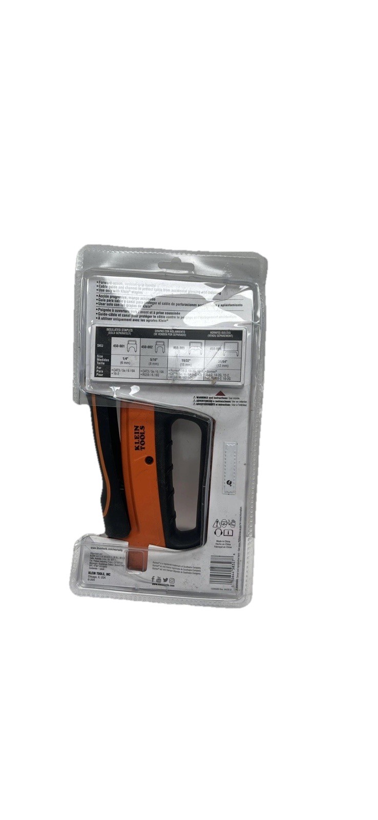 The Klein Tools Loose Cable Stapler 450-100 is a heavy-duty stapler designed for securing loose cables and wires. It is made by the reputable brand Klein Tools, ensuring quality and durability. This specific model is the Klein Tools 450-100, known for its reliability and efficiency in completing the task at hand. Perfect for home improvement projects or professional electrical work, this stapler is a versatile tool that makes securing cables and wires a breeze.
