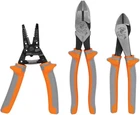 Klein Tools 9416R 1000V Insulated Plier and Wire Stripper Tool Kit, Made in USA, Side-Cutter, Diagonal-Cutter and Wire Stripper, 3-Piece Product Details Brand: Klein Tools Material: Alloy Steel Product Dimensions: 13.75"L x 10.25"W Handle Material: Rubber or Plastic Item Weight: 2.5 Pounds Specific Uses For Product: Professional Specification Met: IEC 60900, ASTM F1505 Grip Type: Standard Manufacturer: Klein Tools Part Number: 9416R Item Weight: 2.5 pounds Country of Origin: USA Item model number: 9416R Is Discontinued By Manufacturer: No Style: 3-Piece Kit Item Package Quantity: 1 Special Features: Induction Hardened Cutting Blades and 1000V Rated Included Components: Insulated Plier, Wire Stripper Tool Kit with Side-Cutter, Diagonal-Cutter and Wire Stripper Batteries Required?: No Brand: Klein Tools Material: Alloy Steel Product Dimensions: 13.75"L x 10.25"W Handle Material: Rubber or Plastic Item Weight: 2.5 Pounds Specific Uses For Product: Professional Specification Met: IEC 60900, ASTM F1505 Grip Type: Standard 3-Piece Kit includes a Side-Cutter (Cat. No. 2139NERINS), Diagonal-Cutter (Cat. No. 2288RINS) and Wire Stripper (Cat. No. 11055RINS) All tools meet or exceed ASTM F1505 and IEC 60900 standards for insulated tools Thick multi-layer grip design provides protection against electric shock Durable molded insulation meets or exceeds ASTM F1505-16(2021) and IEC 60900:2018 standards for insulated tools Made in the USA Pliers feature induction hardened cutting knives for long life Wire Stripper/Cutter cuts, strips, loops, bends, and gauges 10-18 AWG solid and 12-20 AWG stranded wire This Made in the USA 3-Piece Tool Kit includes the must-have insulated tools any professional tradesperson needs including two pairs of pliers and a wire stripper. The pliers and wire stripper feature a multi-color, sleek design with small thumbguards for ease of handling and easy storage in your tool belt. All of the tools are 1000V Rated for safety on the job. For more than 160 years, Klein Tools has manufactured premium-quality, professional-grade hand tools that deliver the performance, durability and precision needed to get the job done right. Our family of engineers, workers and craftsman continue to put six generations of expertise into every tool we create by using only the highest quality materials, superior workmanship, and keeping manufacturing as close to home as we can. Klein isn't just the name of our company, it's also our family name. And since we're an American company that's family-owned and family-run, you know you can count on us to be here tomorrow. Klein Tools doesn't just make great products, we make great products that stand up to the demands of the professionals who use them every day ... Since 1857.