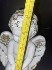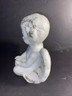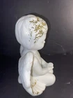 This is a Kneeling Angel Statue Figure with gold flakes, ideal for home decor. The statue features a baby, made of resin material in a white color. The angel theme is depicted in a kneeling position, perfect for those interested in angelic decor.