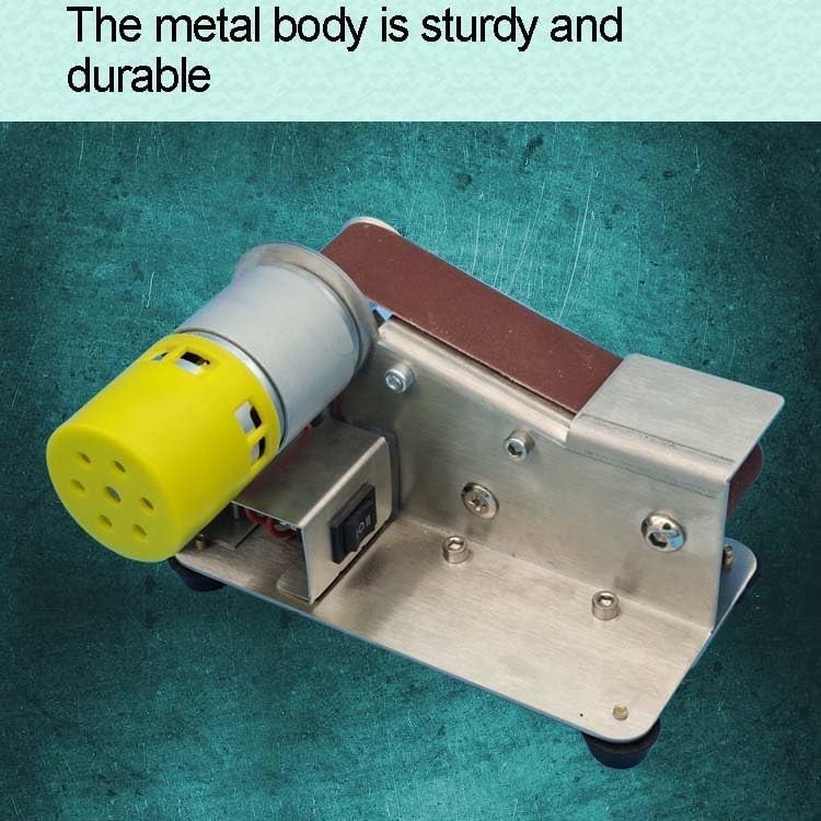 Knife Sharpener, Bench Belt Sander, Stainless Steel Body with 7-Speed Adjustable Power Supply & 10 Sanding Belts, Dual Shaft Motor for Precision Sharpening - 4000-9000 RPM F73 [15-Degree Fixed-Angle Sharpening System]Ensures consistent and precise edge alignment for repeatable, professional sharpening results. The guided design helps maintain the correct angle for kitchen knives, tools, and outdoor blades. [Durable Body]Constructed with a stainless steel housing that . The sturdy metal body provides lasting durability and stability during operation. [ Copper Motor]Powered by a double-shaft motor built with pure copper windings and bearings. Delivers reliable performance with a speed range of 4000–9000 RPM and low-noise operation. [7-Speed Adjustable Power Supply]Includes a speed-regulating power adapter with 7 output voltage settings (12V–24V). Match speed and power to different materials and sharpening stages for optimal control and finish. [Complete Ready-to-Use Kit]Comes with 10 sanding belts (330x30mm), a 7-speed power adapter, two hex wrenches, and a three-way switch supporting forward/reverse rotation. Everything needed to start sharpening immediately. Achieve razor-sharp edges with precision and ease using the 15-Degree Fixed-Angle Electric Knife Sharpener. Designed for enthusiasts, home cooks, and DIYers, this compact yet powerful sharpening machine combines a guided 15-degree angle system with a robust all-metal construction and variable speed control for professional-grade results at home. Specifications: Product Name: Micro Electric Knife Sharpener / Fixed-Angle Sharpening Machine Speed Range: 4000–9000 RPM Power Supply: 7-Speed Adjustable Adapter (Input: 110V–240V) Sanding Belt Size: 330 mm × 30 mm Switch: 3-Position (Forward/Off/Reverse) Product Dimensions: 175 × 110 × 40 mm (6.9″ × 4.3″ × 1.6″) Product Weight: 1.3 kg (2.87 lbs) Operating Temperature: 20–45°C (no-load) Package Includes: 1 × Electric Sharpener Main Unit 1 × 7-Speed Adjustable Power Adapter 10 × Sanding Belts (330×30 mm) 2 × Hex Wrenches Note: 1.Always wear safety glasses and cut-resistant gloves during operation. 2.Start with a lower speed setting to familiarize yourself with the machine’s operation. 3.Keep fingers, clothing, and loose items away from the moving sanding belt. 4.Unplug the unit before changing sanding belts or performing any maintenance. 5.Allow the motor to cool down between extended sharpening sessions. 6.Store in a dry place and keep out of reach of children. Brand TYQMYSM Color One Color Item Weight 1.3 Kilograms Number of Items 1 Manufacturer TYQMYSM