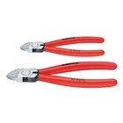 Features and Benefits: Cutters provide a true flush cut finish Two convenient sizes: 5 1/2" and 7" Spring assisted handles for fast and easy repetitive cutting Perfect for cutting plastic ties Forged from Chrome Vanadium electric steel for greater strength New Knipex 2-piece flush cut diagonal cutters set. True flush cut finish - no protruding tip. Popular sizes including 5 1/2 in.; & 7 in.;. Spring assisted handles open in the hand andmake repetitive cutting fast and easy. Made in Germany from Chrome Vanadium electric steel for greaterstrength. Perfect for cutting plastic ties. Packaged in a transparent hanging pouch. Features and Benefits: Cutters provide a true flush cut finish Two convenient sizes: 5 1/2" and 7" Spring assisted handles for fast and easy repetitive cutting Perfect for cutting plastic ties Forged from Chrome Vanadium electric steel for greater strength New Knipex 2-piece flush cut diagonal cutters set. True flush cut finish - no protruding tip. Popular sizes including 5 1/2 in.; & 7 in.;. Spring assisted handles open in the hand andmake repetitive cutting fast and easy. Made in Germany from Chrome Vanadium electric steel for greaterstrength. Perfect for cutting plastic ties. Packaged in a transparent hanging pouch.