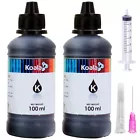 View more great items KOALA High-quality Regular DYE ink refill bottles compatible with ALL Refillable Inkjet Printers or CISS systems. So easy to refill the ink cartridges in 1-2 steps. No mess up, No syringes, No wasted ink! Just pop the cartridges out, clean them and refill the new ink, then you will be ok to print. This is the easiest way to use inkjet printers! * Koala Ink Refill Kit for all desktop refillable inkjet printers or CISS, 2x100 ML per pack. * These inks are specially formulated and manufactured according to the strictest and highest requirements and specifications. It can prevent the printhead from clogging and blocking. * The Printed pictures offer a wide color gamut and vivid output. Ideal for the home users, schools, offices, profession artists, printing shops and small business owners, etc. Universal Koala Premium Dye Ink Refill Kits: compatible with any refillable or CISS inkjet printers. Produces vivid true-to-life prints. Match or Exceed Original Specification on color, PH, surface tension, and viscosity. The color is accurate and vibrant; Reliable Brand and Big Savings: Get premium image quality at competitive prices. Suitable for day-to-day printing. The total ink volume is 200 ml per pack which can save more money by refilling your cartridges. Smooth Printing: Koala ink is designed to prevent corrosions and clogging of the printhead and offer the best print reliability. With high-purity ink, it would not block the print head as genuine ink do. Worry-free Service: ISO-9001 and MSDS approved. 24/7 professional online help. Full refund for any shipping damage issue or quality problems, please contact the seller for help, buy with confidence NOW! Compatible Models: All Refillable Inkjet Printer Cartridges or CISS. Please contact the seller if you are not sure if your printer is compatible or now, we can check it for you. Dye inks generally offer more vivid and bright print quality. Packing Includes: 2 x 100 ml Black Refill Dye Ink Bottles 1 x Needle 1 x Syringe 1. Please thoroughly clean the ink tank, cartridges and print head before using our product, because different brands of ink cannot be mixed; 2. If the ink tank has been filled and the ink bottle is not used up, please cover the cap and keep it in a place that avoids high temperature, high humidity, and direct sunlight; 3. Please print a test sheet, and check the color performance before you do bulk print; 4. Please use up the rest ink ASAP. 5. For other questions you may have, please feel free to contact the seller for help. ATTENTION : This ink is only used for refillable cartridges and CISS (continuous ink system). If you do not know how to refill, please reach to the seller for help or search online for more information.