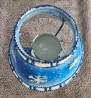Celebrate the festive spirit with this charming Kohl's snowman candle holder, perfect for Christmas décor. Featuring two adorable snowmen dressed in cozy blue scarves and hats, this collectible captures the essence of winter joy. The snowmen stand on a snowy base accented with snowflakes and evergreen trees, all painted in varying shades of blue and white, evoking a serene winter landscape. Crafted from metal, the candle holder includes a blue metal lampshade decorated with cut-out snowflakes and a braided trim, allowing candlelight to softly illuminate the holiday scene. The piece measures approximately 7.5 inches tall, making it a delightful accent for mantels, tables, or shelves. Its "Let It Snow" sign adds a whimsical touch, enhancing its seasonal charm. Ideal for collectors or anyone looking to add a cozy winter vibe to their home, this candle holder combines festive design with durable materials and fine craftsmanship.