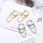Korean Simple Double Chain Ear Buckle Punk Hip Hop Hoop Earrings Features: nickel-free, lead-free,suitable for people including sensitive skin. Wear with upscale dress codes. This fits many occasions. Christmas, Thanksgiving, Birthday Cocktail Party, Holiday, New Years, Special Occasion, Valentine's Day, Mother's Day, Graduation or Engagement Wedding Anniversary This is a stylish and unique daughters, son, lovers,friend and more. If you have any questions, please feel to us. Specifications: Color:White Gold, Golden Length:As Picture Shows Quantity:1 Pair Package Includes: 1 Pairx Ear Buckle note: Please allow a little error on the size due to manual measurement. The color might exist slightly difference due to different displays.