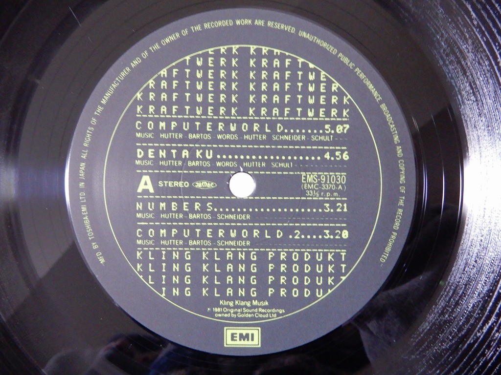 CATEGORY ROCK POP JAZZ SOUL/FUNK JAPANESE HOUSE/TECHNO LATIN BRAZIL OST HIPHOP TERESA TENG BLUES REGGAE CLASSICAL WORLD ARTIST Kraftwerk TITLE Kraftwerk Computer World EMI EMS-91030 Japan VINYL LP LABEL EMI FORMAT LP COVER E (Excellent) conerbump VINYL E+ (Excellent Plus) OBI STRIPE NONE COMMENTS The pictures in this page show actual item which you will receive. Accessories not shown in the photo are not included. Please note that shipping rates are for single LPs. Gatefold & Double albums count as 2LPs, 2CDs Triple albums count as 3LPs, 3CDs & Box Sets are counted per LP & CD. ▶ Grading Policy All gradings are visual and very strict. ▼ Record grading S (Sealed) Record is still sealed and has never been played. M- (Mint minus) Like new. The record does not have any visible light scratches or cracks. E+ (Excellent Plus) The record has hardly visible small scratches etc. The label may have some * In effect E+ means almost faultless. We think you can find records graded E+ quite satisfactory, unless you are a collector who is determined to own a brand new record. EX (Excellent) There are some light scratches and cracks on the record (which can be felt by touch). Sometimes these slight defects may influence sound. *Although some noise is audible in quieter sections of the record, such as fade-outs, and it is especially conspicuous between tracks, it does not have a profound influence on the whole record. The label may have discolorations or ring wear. EX- (Excellent Minus) It is worse than the above, but there are no needle jumps. There is some noise. The label may have discolorations or ring wear. VG+ (Very Good Plus) It is worse than the above. But,No Needle jumping. There is some noise. The label has discolorations or ring wear. VG (Very Good ) It is worse than the above. ▼ Cover grading S (Sealed) Record is still sealed and has never been played. M- (Mint minus) Like new.The Cover does not have any lines, folds, scratches, cracks, spots, or other similar folds. E+ (Excellent Plus) The Cover has small lines / folds / scratches / cracks / spots / ring wear, or other similar faults. E (Excellent) The Cover may have light lines, folds, scratches, cracks, spots, some writing, some tape or sticker (or traces of such) and ring wear. It may be slightly dirty. E- (Excellent minus) It is worse than the above, The Cover may have light lines, folds, scratches, cracks, spots, some writing, some tape or sticker (or traces of such) and ring wear. The Cover may be dirty. VG+ (Very Good Plus) It is worse than the above,The Cover has striking folds, scratches, cracks, spots, ring wear, some writing, scotch tape, or stickers. VG (Very Good) It is worse than the above. ▼ OBI grading S (Sealed) M- (Mint minus) E+ (Excellent Plus) E (Excellent) E- (Excellent minus) VG+ (Very Good Plus) VG (Very Good) - - - - ▼ Other Abbreviations W Writing ST Stickers, tape WD Water Damage S Stain M Mold C Corner cut P Punch hole D Drill hole SP Cover Split DJ promotion copy SF Same Flip ▼ OBI Abbreviations OW OBI Writing OST OBI Stickers, tape OWD OBI Water Damage OS OBI Stain OM OBI Mold OP OBI Split - - - - - - - - - - ▼ Degree of Warping Vinyl Condition: 「Warp 1」 Vinyl Condition: 「Warp 2」 Vinyl Condition: 「Warp 3」 ▼ NOTICE All gradings are visual. Please note that we only perform lightly cleaning. An abbreviation of the country of origin is listed next to/below the label. Warps, heat damage, or chemical changes due to polyurethane sleeves and vinyl chloride records, and manufacturing defects, etc... are separately described in the comment column. We will be happy to give you more information for any special record if you have further questions. ▶ International Buyers - Please Note: Import duties, taxes and charges are not included in the item price or shipping charges. These charges are the buyer's responsibility. Please check with your country's customs office to determine what these additional costs will be prior to bidding/buying. These charges are normally collected by the delivering freight(shipping) company or when you pick the item up - do not confuse them for additional shipping charges. We do not mark merchandise values below value or mark items as"gifts"- US and International government regulations prohibit such behavior. IMPOTANT :As of Aug 29, 2025, the U.S. ended the “De Minimis” exemption — even low-value orders may now incur customs duties/taxes. ▶ Payment The item will be shipped within 3 business days after the payment is received. The reserve period is up to 14 days. If you demand for combining multiple vinyl records in one shipping, please make payment for all of items at once. We would appreciate it if you could add the records you wish to purchase to your cart, then click "Request combined shipping." So that we can send you a revised invoice for combining shipping, then please make the payment. ▶ Shipping Information All of the items will be shipped by from Japan. You can check the single or combined international shipping cost from the rates table shown below. Please wait for the invoice of total values which will be issued after the auction. Due to postal regulations aimed at preventing the spread virus infection, postal delivery has been delayed worldwide. Please note that the postal delivery may take more time than eBay expectation to arrive. Please register your phone number with eBay so that your carrier can contact you. When reporting about damage to the cover jacket or vinyl record after you received, please include a photo of the condition of the parcel that was mailed to you. SHIPPING RATES LP We ship by ASIA DHL $16 each add. LP $4.00 Gatefold LP/2LP $6.00 7"/CD $2.00 USA / CANADA / NORTH AMERICA DHL $18 each add. LP $5.00 Gatefold LP/2LP $7.50 7"/CD $2.00 EUROPE / OCEANIA DHL $18 each add. LP $5.00 Gatefold LP/2LP $7.50 7"/CD $2.00 SOUTH AMERICA / AFRICA / MIDDLE EAST DHL $28 each add. LP $6.00 Gatefold LP/2LP $9.00 7"/CD $2.00 ELLA RECORDS has been 