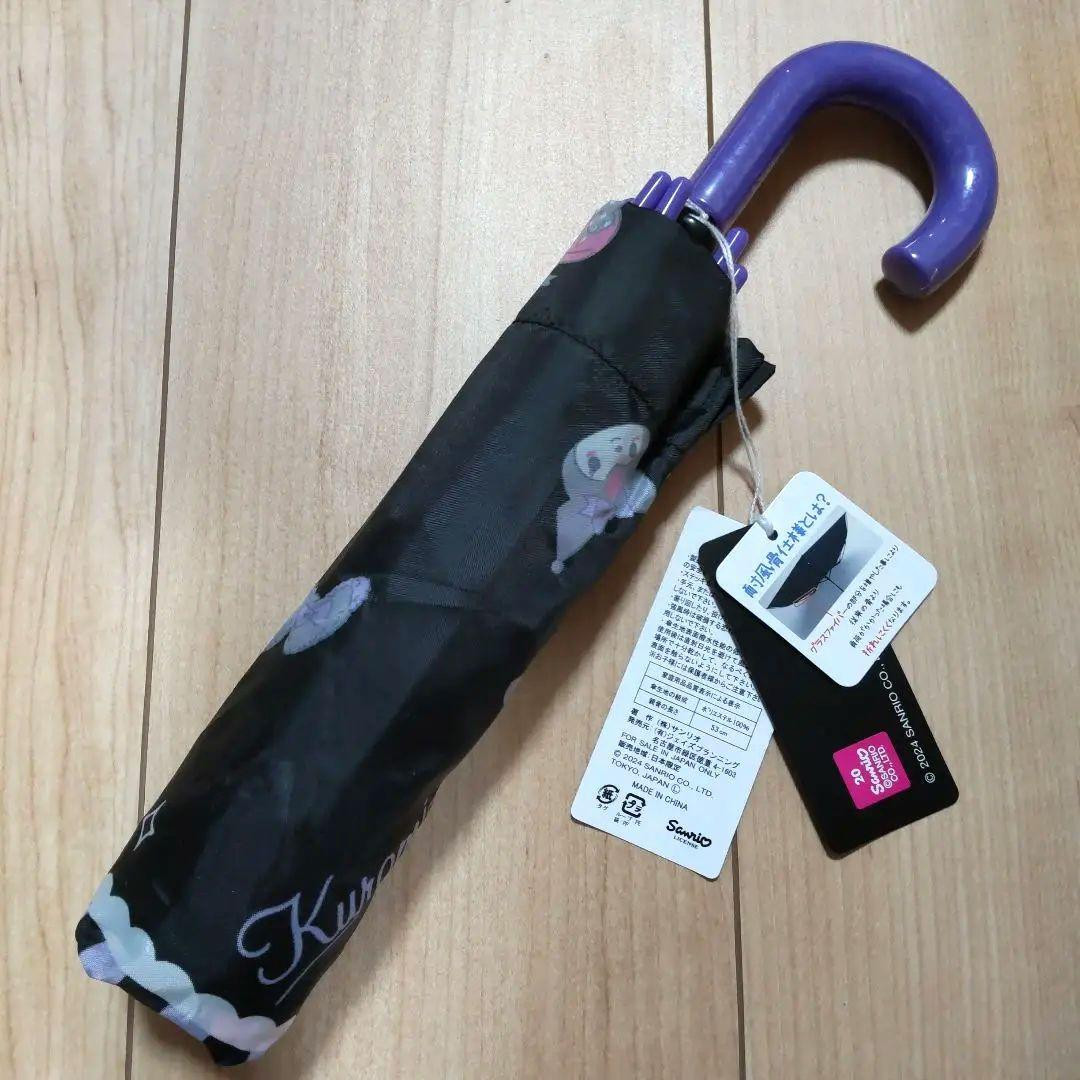 Kuromi Cute Black Folding Compact Umbrella with Pink Bow