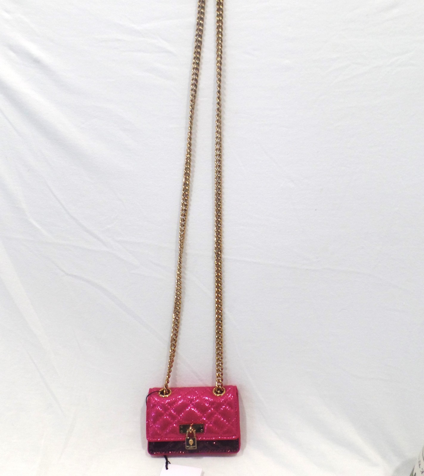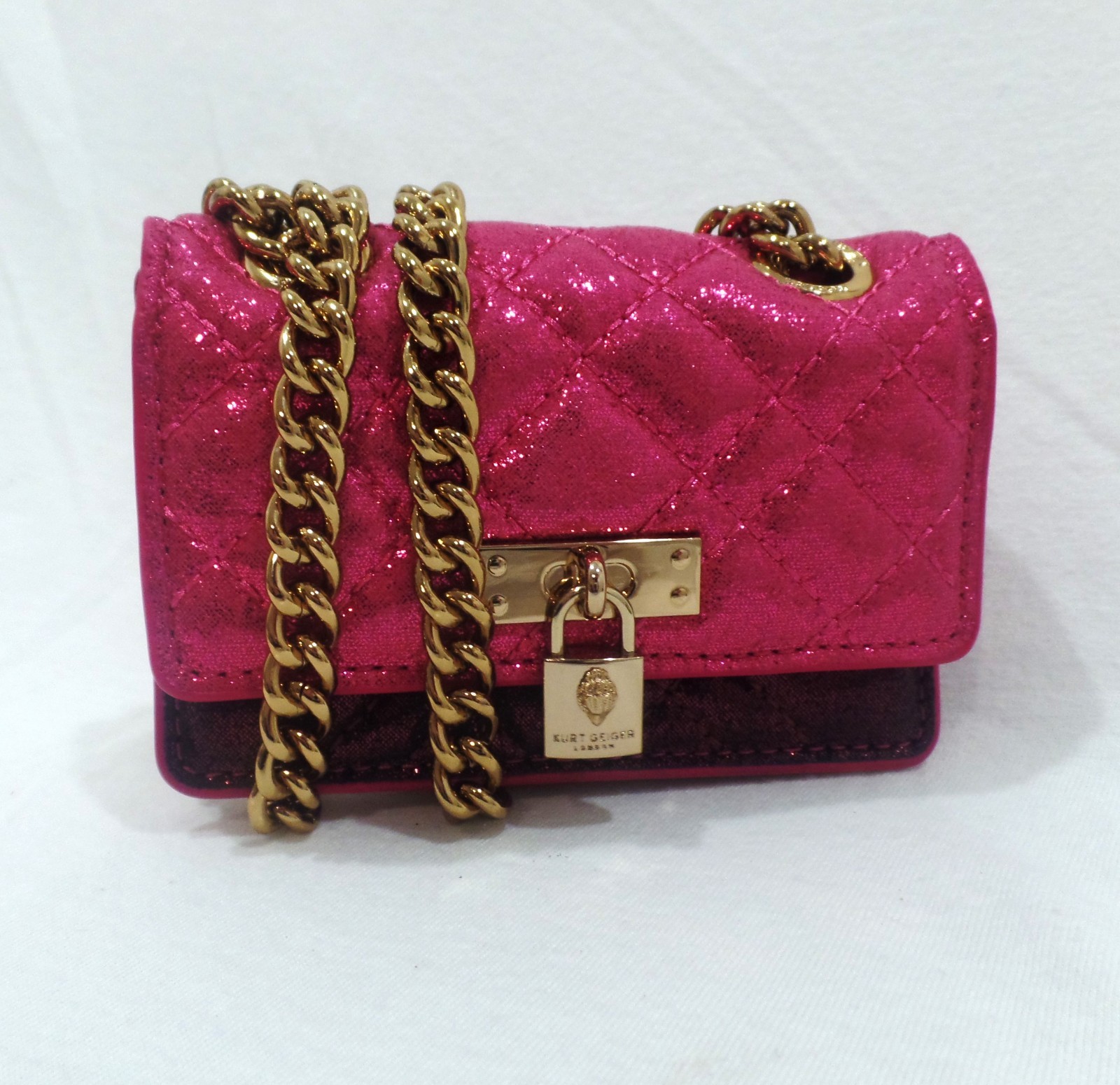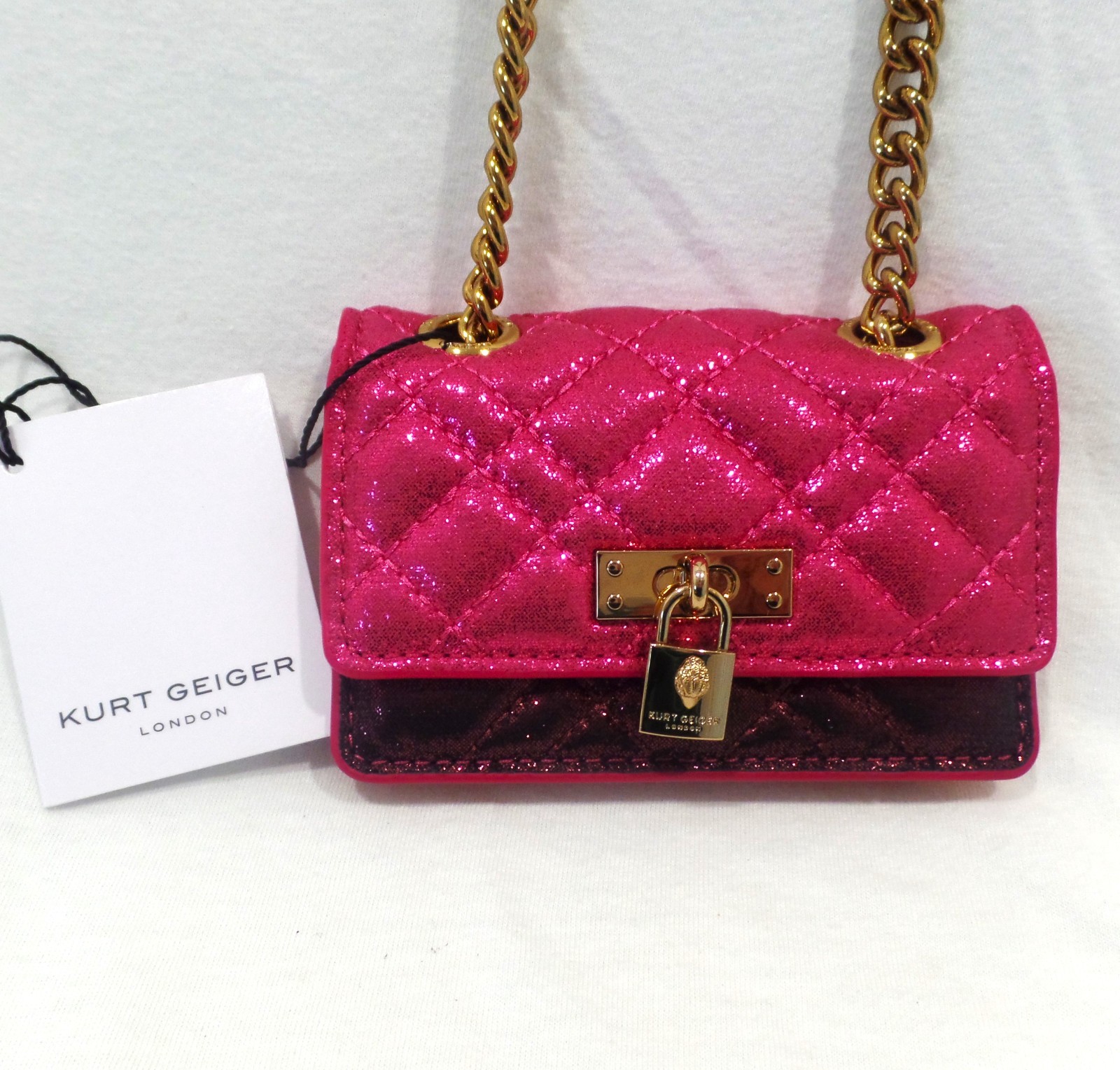 Kurt Geiger London MICRO BRIXTON Quilted Fabric Crossbody Fuchsia Chain & Lock. New with Tags Quarter is only for showing size and is not includeed.