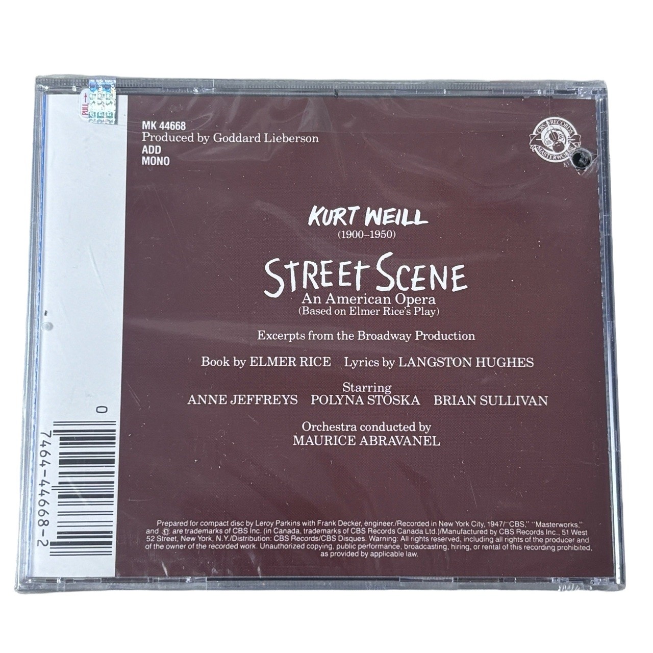 Authentic CBS Masterworks release of Kurt Weill – Street Scene (Original Broadway Cast Recording), featuring Anne Jeffreys, Polyna Stoska, and Brian Sullivan. This landmark American opera, based on Elmer Rice’s play with lyrics by Langston Hughes, blends Broadway musical storytelling with operatic depth. Details: • Composer: Kurt Weill (1900–1950) • Album Title: Street Scene – Original Broadway Cast • Format: CD • Label: CBS Masterworks • Catalog #: MK 44668 • UPC: 074644466820 • Genre: Classical / Opera / Broadway / Cast Recording • Country: USA • Recording Year: 1947 (digitally remastered for CD release) • Orchestra Conducted By: Maurice Abravanel • Produced By: Goddard Lieberson