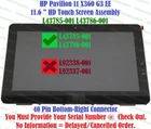 L47209-001 HP ProBook x360 G3 EE LCD LED Touch Screen Assembly Panel Verification Note 1. We need your laptop serial number to match up screen details with HP. 2.Listed Screen Assembly will only fit 30 pin screen HP Part numbers L47209-001 L47210-001 L43785-001 L43786-001 3.Listed Screen Assembly will not fit L92337-001 L92338-001 with 40 pin screens. Ghost Touch, Running Touch, No-Touch, and Inverted Touch are not screen related issues. Kindly check your digitizer board and cable since they are the most likely cause of any touch issue; please do not open a return claiming the touch did not work. If the machine has a weakened or fragile digitizer board, the replacement unit or assembly will not have proper touch or in some cases it may not have touch at all. Important Note Provide Laptop serial number if you are clueless about screen you need. Part number: HP L47210-001 HP L43785-001 HP L43786-001 HP L47209-001 1. We need your laptop serial number to match up screen details with HP. * 2.Listed Screen Assembly will only fit Round Bezel Corners HP Part numbers * L47209-001 L47210-001 L43785-001 L43786-001 * 3.Listed Screen Assembly will not fit L92337-001 * L92338-001 with Sharp Corner Bezel. B116xtn02.3 Model number: HP K12 PBx36011G3 CelN4000 11 4GB/64 PC HP K12 PBx36011G3 CelN4100 11 4GB/128 PC HP K12 PBx36011G3 CelN4100 11 4GB/64 PC HP K12 PBx36011G3 PentN5000 11 4GB/128 HP K12 PBx36011G3 PentN5000 11 4GB/128 P HP K12 PBx36011G3 PentN5000 11 4GB/128PC HP K12 PBx36011G3 PentN5000 11 4GB/256PC HP K12 PBx36011G3 PentN5000 11 8GB/128PC HP K12 PBx36011G3 PentN5000 11 8GB/256PC HP PBx36011G3 CelN4000 11 4GB/64 PC HP PBx36011G3 PentN5000 11 4GB/128 PC HP ProBook x360 11 G3 EE Notebook PC HP K12 Probook X360 11 G3 CelN4000 11 4GB/128 P HP K12 Probook X360 11 G3 CelN4000 11 4GB/128 PC HP K12 Probook X360 11 G3 CelN4000 11 4GB/256 PC HP K12 Probook X360 11 G3 CelN4000 11 4GB/64 PC HP K12 Probook X360 11 G3 CelN4100 11 4GB/128 PC HP K12 Probook X360 11 G3 PentN5000 11 4GB/128 P HP K12 Probook X360 11 G3 PentN5000 11 4GB/128PC HP K12 Probook X360 11 G3 PentN5000 11 4GB/256 HP K12 Probook X360 11 G3 PentN5000 11 4GB/256PC HP K12 Probook X360 11 G3 PentN5000 11 8GB/128PC HP K12 Probook X360 11 G3 PentN5000 11 8GB/256PC HP Probook X360 11 G3 CelN4000 11 4GB/128 PC HP Probook X360 11 G3 CelN4000 11 4GB/128 PC Int HP Probook X360 11 G3 CelN4000 11 4GB/256 PC Int HP Probook X360 11 G3 CelN4000 11 4GB/64 PC HP Probook X360 11 G3 CelN4100 11 4GB/128 PC HP Probook X360 11 G3 CelN4100 11 4GB/64 PC HP Probook X360 11 G3 PentN5000 11 4GB/128 PC HP Probook X360 11 G3 PentN5000 11 4GB/128 PC In HP Probook X360 11 G3 PentN5000 11 8GB/128 PC HP Probook X360 11 G3 PentN5000 11 8GB/256 PC HP Probook X360 11 G3 PentN5000 11 8GB/256 PC In HP ProBook x360 11 G3 EE Notebook PC Heather Gray +SOG PLA SPCL P360113UCN4100QN128NINCN04NNue 11.6 HD BV LED UWVA 220 slim TS HP CHROMEBOOK X360 11 G3 CelN4000 11 4GB/32 PC HP CHROMEBOOK X360 11 G3 CelN4000 11 4GB/32 PC Int HP CHROMEBOOK X360 11 G3 CelN4000 11 4GB/32 PC Inte HP CHROMEBOOK X360 11 G3 CelN4020 11 4GB/32 PC HP CHROMEBOOK X360 11 G3 CelN4020 11 4GB/32 PC Int HP CHROMEBOOK X360 11 G3 CelN4020 11 4GB/32 PC Inte HP CHROMEBOOK X360 11 G3 CelN4020 11 4GB/64 PC HP CHROMEBOOK X360 11 G3 CelN4020 11 8GB/32 PC HP CHROMEBOOK X360 11 G3 CelN4020 11 8GB/32 PC Inte HP CHROMEBOOK X360 11 G3 CelN4020 11 8GB/64 PC HP CHROMEBOOK X360 11 G3 CelN4100 11 4GB/32 PC HP CHROMEBOOK X360 11 G3 CelN4100 11 4GB/32 PC Inte HP CHROMEBOOK X360 11 G3 CelN4120 11 4GB/32 PC HP CHROMEBOOK X360 11 G3 CelN4120 11 4GB/32 PC Int HP CHROMEBOOK X360 11 G3 CelN4120 11 4GB/32 PC Inte HP CHROMEBOOK X360 11 G3 CelN4120 11 8GB/64 PC HP CHROMEBOOK X360 11 G3 CelN4120 11 8GB/64 PC Int HP CHROMEBOOK X360 11 G3 CelN4120 11 8GB/64 PC Inte HP CBx36011MKG3 MT8183 11 4GB/32 PC HP CBx36011MKG3 MT8183 11 4GB/32 PC MT81 HP CBx36011MKG3 MT8183 11 4GB/64 PC HP CBx36011MKG3 MT8183 11 4GB/64 PC MT81 HP CBx36011MKG3 MT8183 11 8GB/32 PC HP CBx36011MKG3 MT8183 11 8GB/32 PC MT81 HP CBx36011MKG3 MT8183 11 8GB/64 PC HP K12 Probook X360 11 G3 CelN4000 11 4GB/64 PC HP K12 Probook X360 11 G3 CelN4100 11 4GB/128 PC HP K12 Probook X360 11 G3 CelN4100 11 4GB/64 PC HP K12 Probook X360 11 G3 PentN5000 11 4GB/128 HP K12 Probook X360 11 G3 PentN5000 11 4GB/128 P HP K12 Probook X360 11 G3 PentN5000 11 4GB/128PC HP K12 Probook X360 11 G3 PentN5000 11 4GB/256PC HP K12 Probook X360 11 G3 PentN5000 11 8GB/128PC HP K12 Probook X360 11 G3 PentN5000 11 8GB/256PC HP Probook X360 11 G3 CelN4000 11 4GB/64 PC HP Probook X360 11 G3 PentN5000 11 4GB/128 PC HP ProBook x360 11 G3 EE Notebook PC HP K12 Probook X360 11 G3 CelN4000 11 4GB/64 PC HP K12 Probook X360 11 G3 CelN4100 11 4GB/128 PC HP K12 Probook X360 11 G3 CelN4100 11 4GB/64 PC HP K12 Probook X360 11 G3 PentN5000 11 4GB/128 HP K12 Probook X360 11 G3 PentN5000 11 4GB/128 P HP K12 Probook X360 11 G3 PentN5000 11 4GB/128PC HP K12 Probook X360 11 G3 PentN5000 11 4GB/256PC HP K12 Probook X360 11 G3 PentN5000 11 8GB/128PC HP K12 Probook X360 11 G3 PentN5000 11 8GB/256PC HP Probook X360 11 G3 CelN4000 11 4GB/64 PC HP Probook X360 11 G3 PentN5000 11 4GB/128 PC HP ProBook x360 11 G3 EE Notebook PC HP K12 Probook X360 11 G3 CelN4000 11 4GB/128 - - 8AB44ES, HP K12 Probook X360 11 G3 CelN4000 11 4GB/128 - - 8AC76ES, HP K12 Probook X360 11 G3 CelN4000 11 4GB/128 PC - 8NL39US, HP K12 Probook X360 11 G3 CelN4000 11 4GB/256 PC - 8DZ93UP, HP K12 Probook X360 11 G3 CelN4000 11 4GB/256 PC - 8EA08UP, HP K12 Probook X360 11 G3 CelN4000 11 4GB/64 PC - 8AB45ES, HP K12 Probook X360 11 G3 CelN4000 11 4GB/64 PC - 8NL43US, HP K12 Probook X360 11 G3 CelN4000 11 4GB/64 PC - 8NL47US, HP K12 Probook X360 11 G3 CelN4100 11 4GB/128 PC - 3E541EP, HP K12 Probook X360 11 G3 CelN4100 11 4GB/128 PC - 9MR63UP, HP K12 Probook X360 11 G3 PentN5000 11 4GB/128 - - 8MH00ES, HP K12 Probook X360 11 G3 PentN5000 11 4GB/256 - 8AB55ES, HP K12 Probook X360 11 G3 PentN5000 11 4GB/256PC - 8DZ98UP, HP K12 Probook X360 11 G3 PentN5000 11 8GB/128PC - 8LB