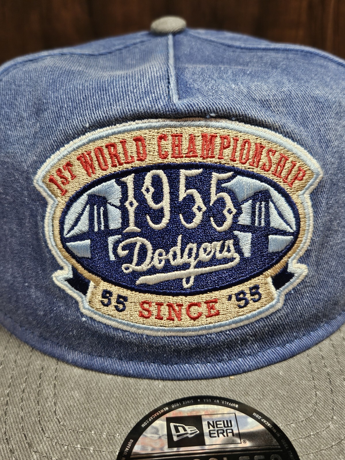 This LA Dodgers New Era baseball cap is a must-have accessory for any sports fan. With its gray and blue color scheme and adjustable snapback closure, it is both stylish and comfortable. The cap features the team's logo and the words "1955 1st World Championship" embroidered on the front, making it a great piece of memorabilia for the team's storied history. Perfect for any occasion, whether you're going to a baseball game, traveling, or just looking for a casual outfit, this cap is a great addition to any wardrobe.