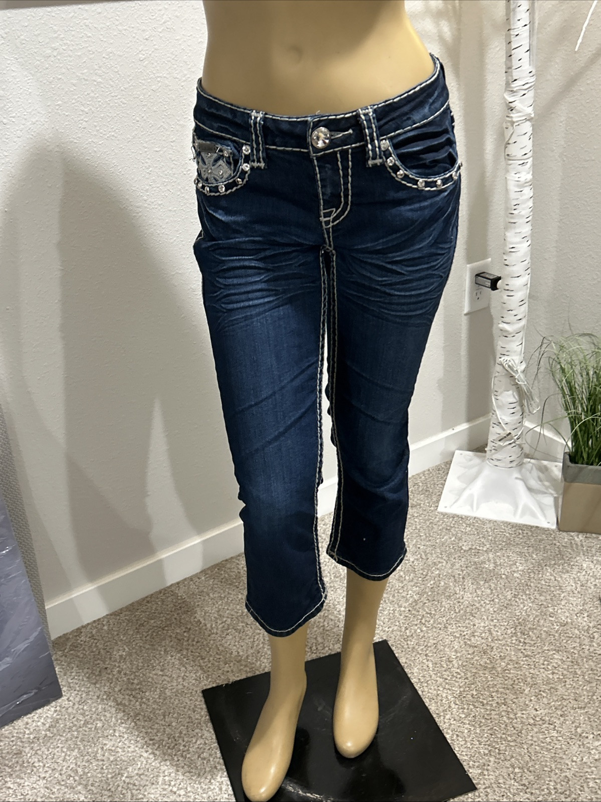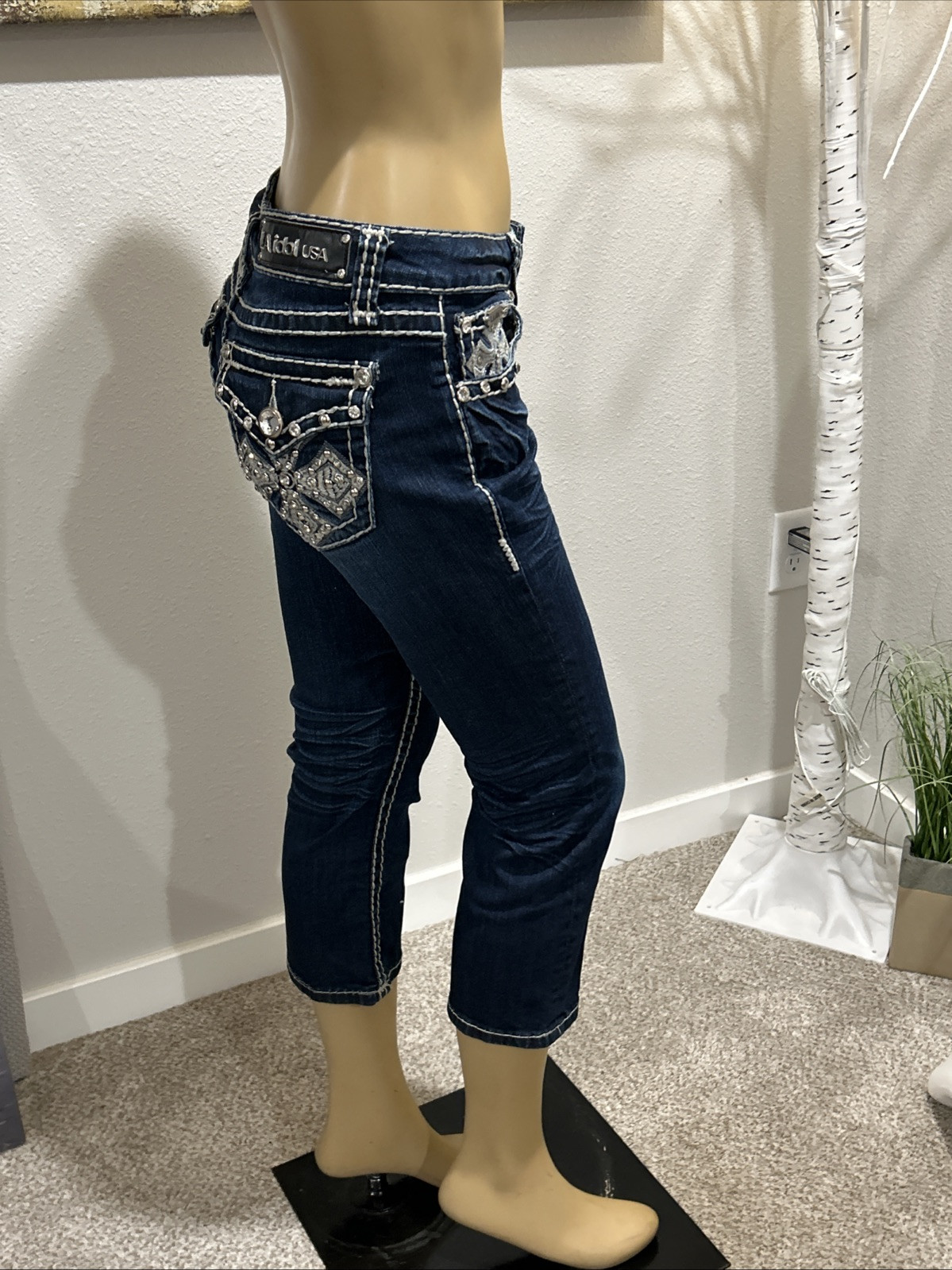 LA IDOL USA Maltese Cross Embroidered Capri Jeans Womens SIZE 5 (29x18)