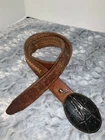 Made in Mexcio Closure: Changeable Buckle Material: 100% genuine Cowhide crocodile print leather buckle Belt: Leather with woven accents and embossed name Rafael Color: Brown Approximate Width: 1.5 inches Available Sizes: 40(fits 38" waist) Model: Leather Belt