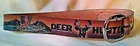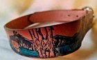 ** You are bidding on a Hand Tooled Leather Belt featuring Deer Hunting Mountain Scenery with Buckle, snap to change the buckle – waist size is unknown but length of belt without the buckle is about 38 ¾ inches, buckle measures 2 ½ by 2 1/8 inches, buckle is marked Taiwan R.O.C. – appears to have been used and is a bit misshapen from storage – comes to you in As Is Condition. {25705.191112} I am by no means an expert, so please feel free to ask plenty of questions. I will ship USPS - either Priority or Standard Post depending on the size and weight of the item. Please note that if you are bidding from outside of the United States, the shipping will be more expensive. Please contact me regarding a quote on shipping or refer to the Shipping Calculator for shipping charges. In all instances, please wait for an invoice before paying so that I can give you the correct amount for shipping and handling. I only accept PayPal due to EBay's requirements. I am always happy to provide additional pictures or answer additional questions. Please note that I will reply during the evening hours since I am may be unavailable to my computer during the daytime hours. Your purchase comes from a clean, smoke free, pet free home. I try to describe the overall condition as best possible. Please ask questions BEFORE bidding. Your purchase is FINAL and NO REFUNDS will be given. Also, please note that you are buying this item AS IS ? be aware of any toy recalls if necessary and know that you are purchasing a collectible for an adult versus a toy for a child. I do not add insurance automatically - if you would like to insure your item, please let me know. Please contact me within 48 hours of receiving your invoice so that we can make payment/delivery arrangements. Note that payment is due within a week of receiving your invoice; if not, I will file a Non Paying Bidder form at that time. Please see my other auctions - add toydaze49 to your favorites!!! Thanks and good luck! **Please note that display materials may have