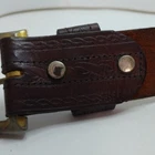 Men's Leather Belt Length: 35.5" long Buckle to first hole 28.5" Was gold/ buckle now silver belt shoes signs of normal wear