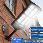 2000000LM LED Solar Street Lights Outdoor Waterproof Motion Sensor Security Lamp #51017-51016 1500W 288LED+Remote+Pole/1000W 192LEDs+Remote+Pole: --Easy to install: Equipped with remote control and mounting rod, can be fixed with screws, easily installed on the wall or pole, reliable operation, no wiring or grooves required --IP66 waterproof: Made of ABS material, with IP66 waterproof performance, 15 meters away wireless remote control, able to withstand various outdoor environments and weather conditions --High brightness lighting: Polycrystalline silicon solar photovoltaic panels have high photoelectric conversion rate, with 288 5730 high brightness SMD lamp beads, high lumen LED, lighting time can exceed 6 hours --Wide application: Suitable for squares, parks, gardens, courtyards, streets, corridors, passages, campuses, farms, surrounding security, etc. --Three functions: radar human body sensing + light control + remote control, intelligent light control system, automatic charging during the day, automatic lighting at night, large sensing range, built-in motion sensor, automatic light adjustment Specifications: Wattage: 1500W Light color: White light Material: ABS Solar panel power: 6V/10W Output current of photovoltaic panel: 1.7A Battery capacity: 8000mAh Waterproof grade: IP66 Lighting angle: 120° Color temperature: 8500k Lifespan: 50000h (LED) Lighting time: more than 6 hours Lamp beads: 288 5730 high brightness SMD lamp beads Product function: radar human body sensing + light control + remote control Lamp body size: 435*215*47mm/17.1*8.5*1.8inch Solar panel size: 392*200mm /15.4*7.9inch Wattage: 1000W Solar panel power: 6V/6W Output current of photovoltaic panel: 1A Battery capacity: 4000mAh Waterproof grade: IP66 Lighting angle: 120° Color temperature: 8500k Lifespan: 50000h (LED) Lighting time: more than 6 hours Lamp beads: 192 5730 high brightness SMD lamp beads Product function: radar human body sensing + light control + remote control Lamp body size: 420*140*40mm/16.5*5.5*1.5inch Solar panel size: 379*129mm /14.9*5.0inch Package includes: 1*Solar street light 1*Mounting pole 1*Remote control 2*AAA battery 2*Expansion tube 1*Screw #51004-51003 1300W 180LED+Remote+Pole/800W 108LED+Remote+Pole: [High brightness & 240 degree wide angle lighting] The solar street light adopts high-efficiency 180 5730 LED lamp beads, the LED beads have large chips and high lumens, brighter than other LED beads. Upgraded 2-way 240-degree wide-angle lighting, compared with ordinary 180° commercial solar lights, the lighting range is wider and brighter. [Easy to install and widely used] This solar light has 2 installation methods, pole mounting and wall mounting. The wireless design is easy to install, no annoying wires or adapters, no need to buy batteries. It is very suitable for places such as unlit driveways and paths, parking lots, garages, gardens, streets, courtyards and squares [0 electricity bills and super long working time] This solar light is charged for 6-8 hours during the day and works for more than 12 hours. Solar-powered, no need to pay extra electricity bills. The solar light has a 5000mAh large battery solar panel, and the solar panel with a conversion rate of 25% collects more energy and has a longer lighting time. [3 lighting modes and wireless remote control] Radar body sensing + light control + remote control, intelligent light control system, automatic charging during the day, automatic lighting at night, intelligent human body radar sensing, light up when people come, and turn off when people leave, with a large sensing range. [IP66 waterproof and durable and multi-layer protective packaging] The street light is made of high-quality ABS and metal rods, which is durable and can withstand various outdoor harsh weather conditions. The foam box protective package ensures that the product is protected when it is hit or vibrated. Specifications: Wattage: 1300W Material: ABS engineering plastic + PC Waterproof grade: IP66 Full power lighting: 12 hours Output current of photovoltaic panel: 1.7A Power of photovoltaic panel: 6V/10W Lamp bead board: 180 beads/5730 lamp beads/15 grids Lamp bead color temperature: 8500K-9000K Illumination area: 30/50 square meters Installation height: 4-6m/16-20 ft Battery capacity: 5000mAh Product function: light control + intelligent remote control + human body induction Maximum remote control distance: 15M/49 ft Maximum induction distance: 30M/98 ft Use scenario: road, garden, courtyard Product description: Three lighting modes are available Constant light mode; 2H/3H/5H/6H/8H constant light and then switch to radar mode; full radar mode Product size: 445*205*42mm/17.5*8*1.65 inches Photovoltaic panel size: 399*187mm/15.7*7.4 inches Wattage: 800W Material: ABS engineering plastic + PC Waterproof level: IP66 Full power lighting: 12 hours Output current of photovoltaic panel: 1A Power of photovoltaic panel: single crystal 6V/6W Lamp bead board: 108 beads/5730 beads/10 grids Lamp bead color temperature: 8500K-9000K Illumination area: 30/50 square meters Installation height: 4-6m/16-20 ft Battery capacity: 2400mAh Product function: light control + intelligent remote control + human body induction Maximum remote control distance: 15M/49 ft Maximum induction distance: 30M/98 ft Product description: Three lighting modes are available Constant light mode; 2H/3H/5H/6H/8H constant light and then switch to radar mode; full radar mode Product size: 321*202*42mm/12.6*8*1.65 inches Photovoltaic panel size: 277*187mm/10.9*7.4 inches Package includes: 1*Solar street light 1*Mounting pole 1*Remote control 4*Expansion screws M10 4 sets*Fixed screws 4 sets*Bracket screws 1*Instruction manual 1*Mini wrench 2*AA batteries 1*Foam packaging box #51013-51012 1000W 192LED+Remote+Pole/800W 144LED+Remote+Pole: --Easy to install: Equipped with remote control and mounting rod, can be fixed with screws, easily installed on the wall or pole, reliable operation, no wiring or groo