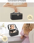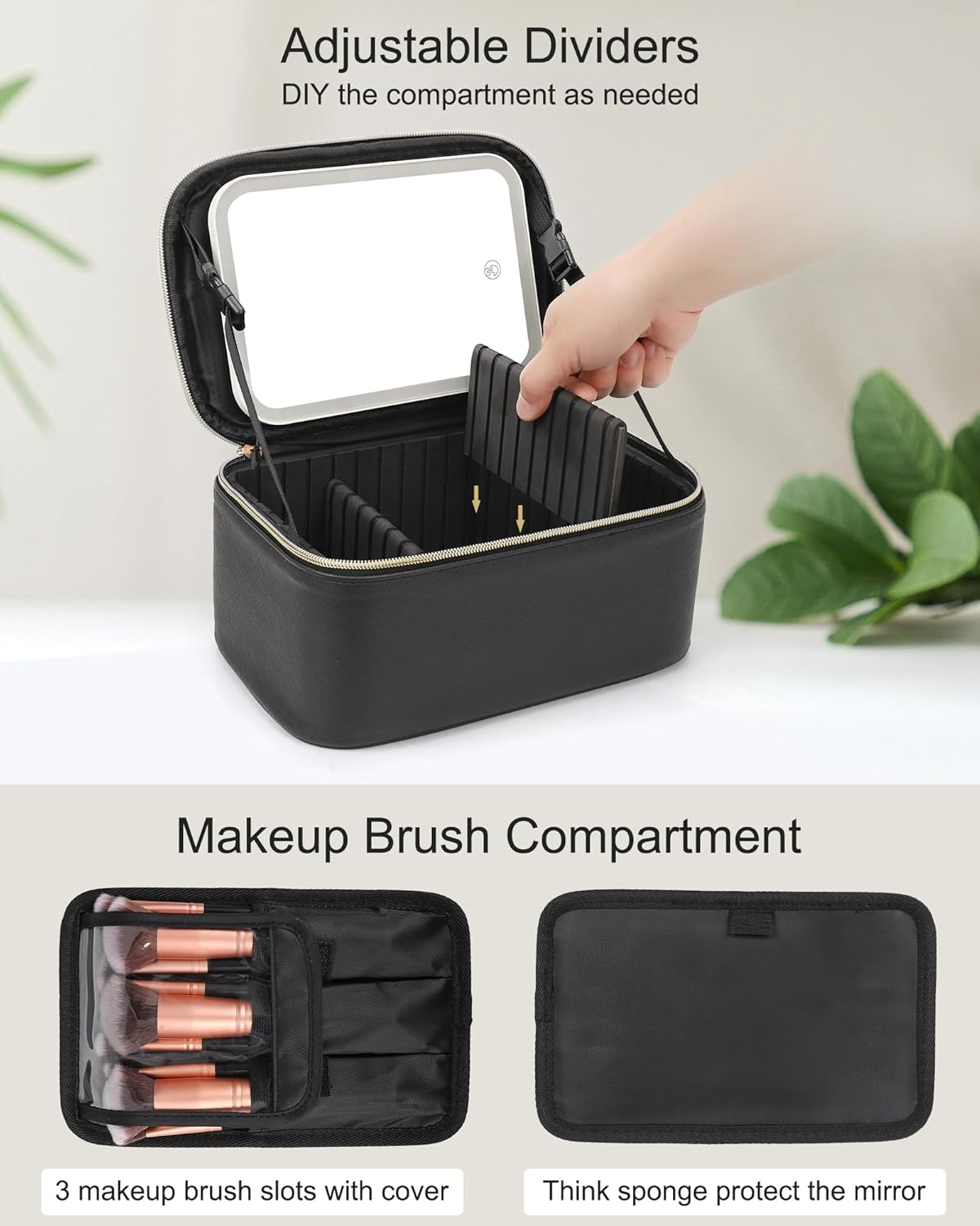 This makeup bag is a game-changer! The built-in LED mirror with 3 color lights is perfect for touch-ups anywhere, and the adjustable dividers keep everything organized. Compact yet spacious, it fits all my essentials without taking up much space. The brush holder is a nice bonus, and the quality feels sturdy. Love how travel-friendly it is—ideal for quick trips or daily use. Definitely worth it!