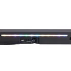 20" soundbar with 2 internal speakers 2.0 channels Bluetooth wireless technology streams audio from all your devices Multi-color LED lighting with 4 light modes and 4 dimmer levels Features 1 Optical, 1 3.5 mm AUX, and 1 USB Connections 30 W RMS output / 120 W peak output (RMS x 4) What's in the Box? 1 LED soundbar 20 in (50.8 cm), 1 AC power cable 4.6 ft (1.4 m), 1 remote control (batteries included), 1 Optical cable 6 ft (1.8 m), 1 3.5 mm AUX cable 6 ft (1.8 m), 1 wall mounting kit, 1 wall mounting template, and 1 Quick Start Guide