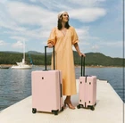 LEVEL8 Carry on Luggage Airline Approved, Women Suitcase, Pink Suitcase with Spinner Wheels, 20 inch Pink Luggage, Lightweight PC Luminous Textured, TSA Lock Cabin Luggage- Pink Condition: BRAND NEW SAME DAY SHIPPING This carry on suitcase was made of 3-Layer 100% Germany BAYER PC. High-strength and durable to provides elasticity and resiliency. Micro-diamond textured design minimizes unwanted marks during checking. Different from the same monotonous colors in the market, This suitcase has 4 specially modulated colors, which can reflect your own taste! for security during international travel. Meets most domestic and international airlines regulations. And equiped with smooth zippers for easy access yo your items. 8 silent universal spinner wheels and 100% aluminum telescoping ergonomic handle with 4 levels for effortless control and maneuverability. Equipped with top and side easy grab handles. Bumper feet on side for protecting the case. Split case designed with 2 roomy fully lined compartments. Zipper mesh pocket can make items neatly organized. 21.5” x 14.5” x 9.2” (including wheels and handles). WEIGHT: 7.7 lbs. PACKING CAPACITY: 40L. Perfect for 1-4 days trips!